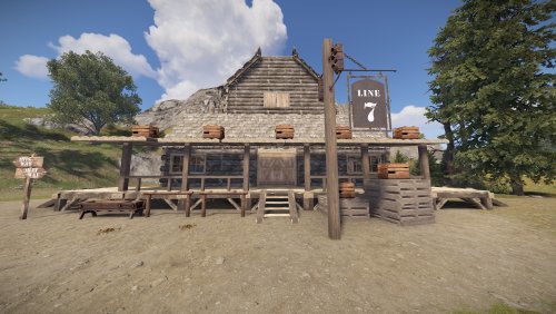Featuring a green & blue keycard puzzle with parkour elements to get the loot! A recycler and level 2 workbench are on the middle floor and are accessible from the roof if you can jump in through the window. Locked doors will prevent you from going up or down so you will need to go through the main floor and solve the puzzle to get loot on the upper floor behind the blue carded door.
