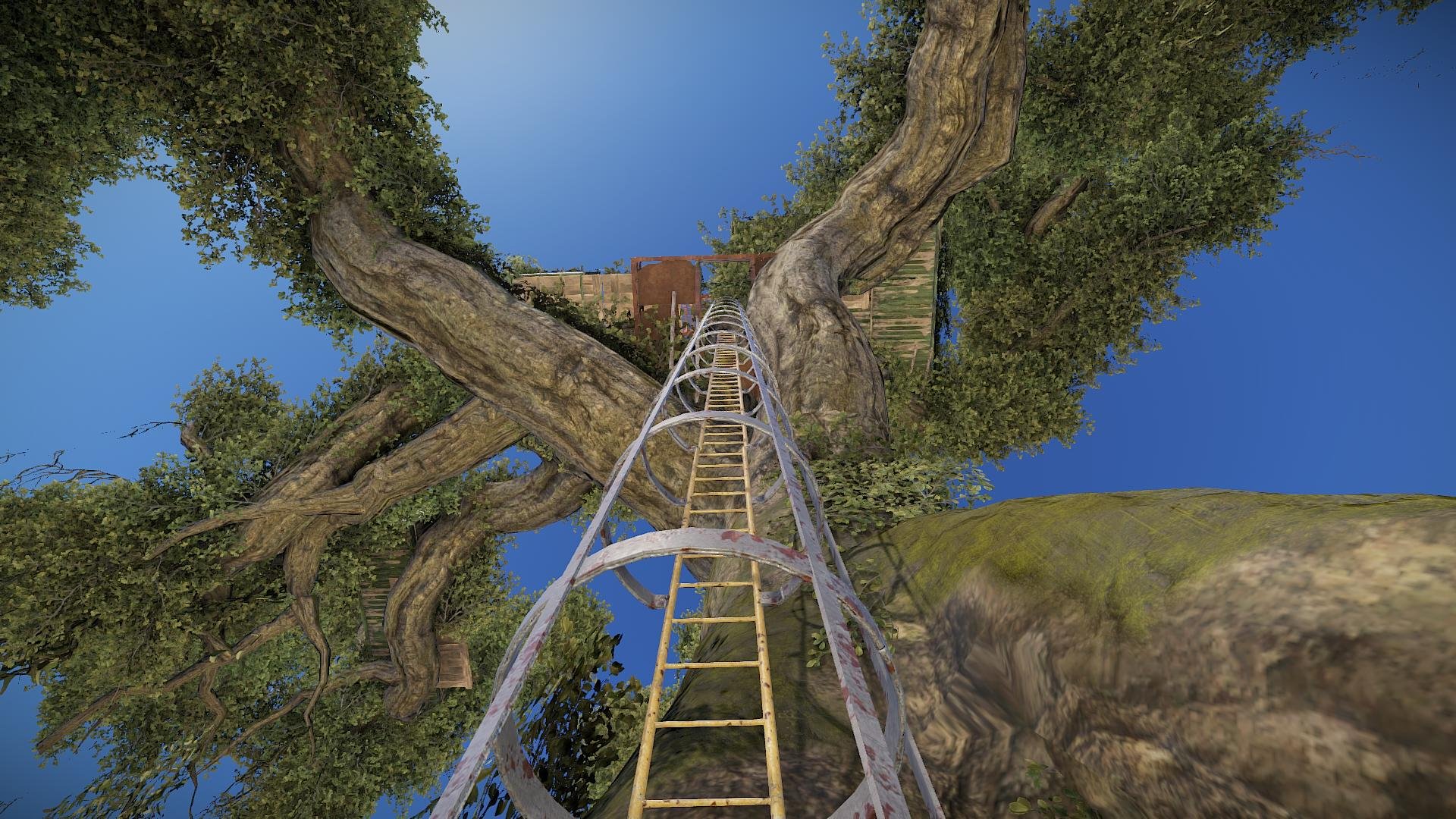 Featuring 5 strategically placed NPCs and 3 loot boxes the tree challenge is a tricky one. Can you kill the npc's after climbing the ladders or will you attempt t take them from below.