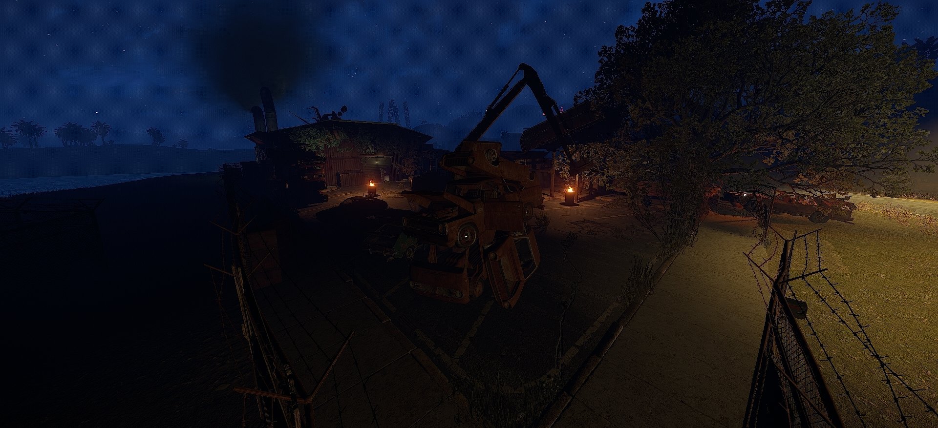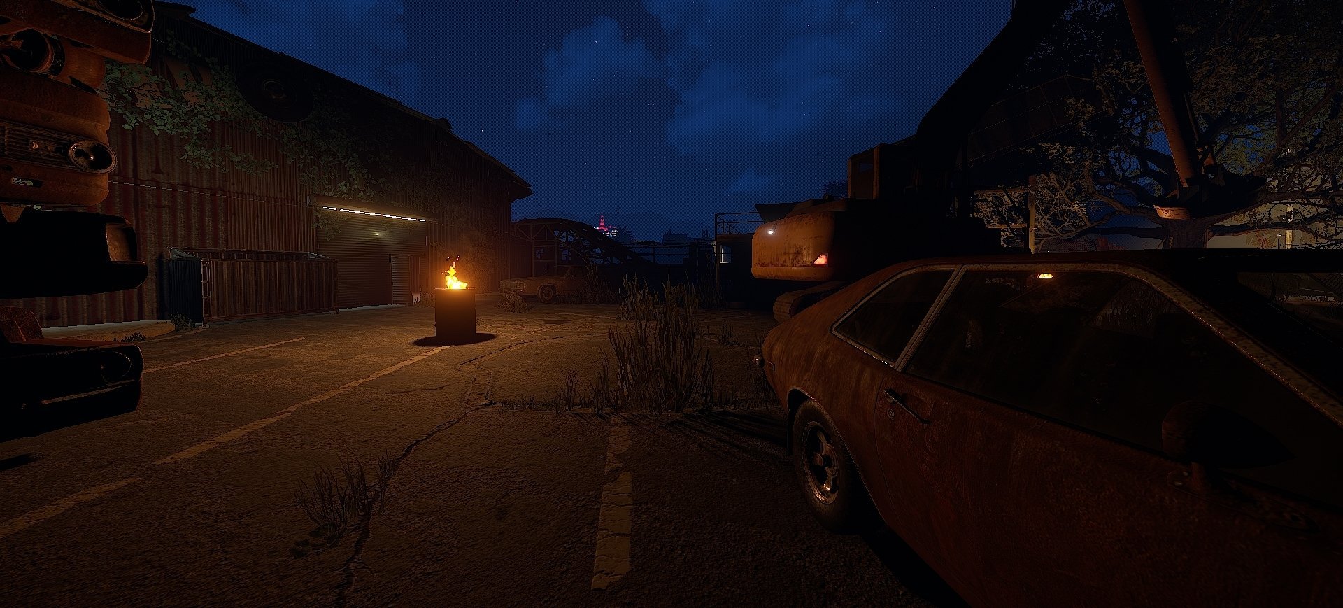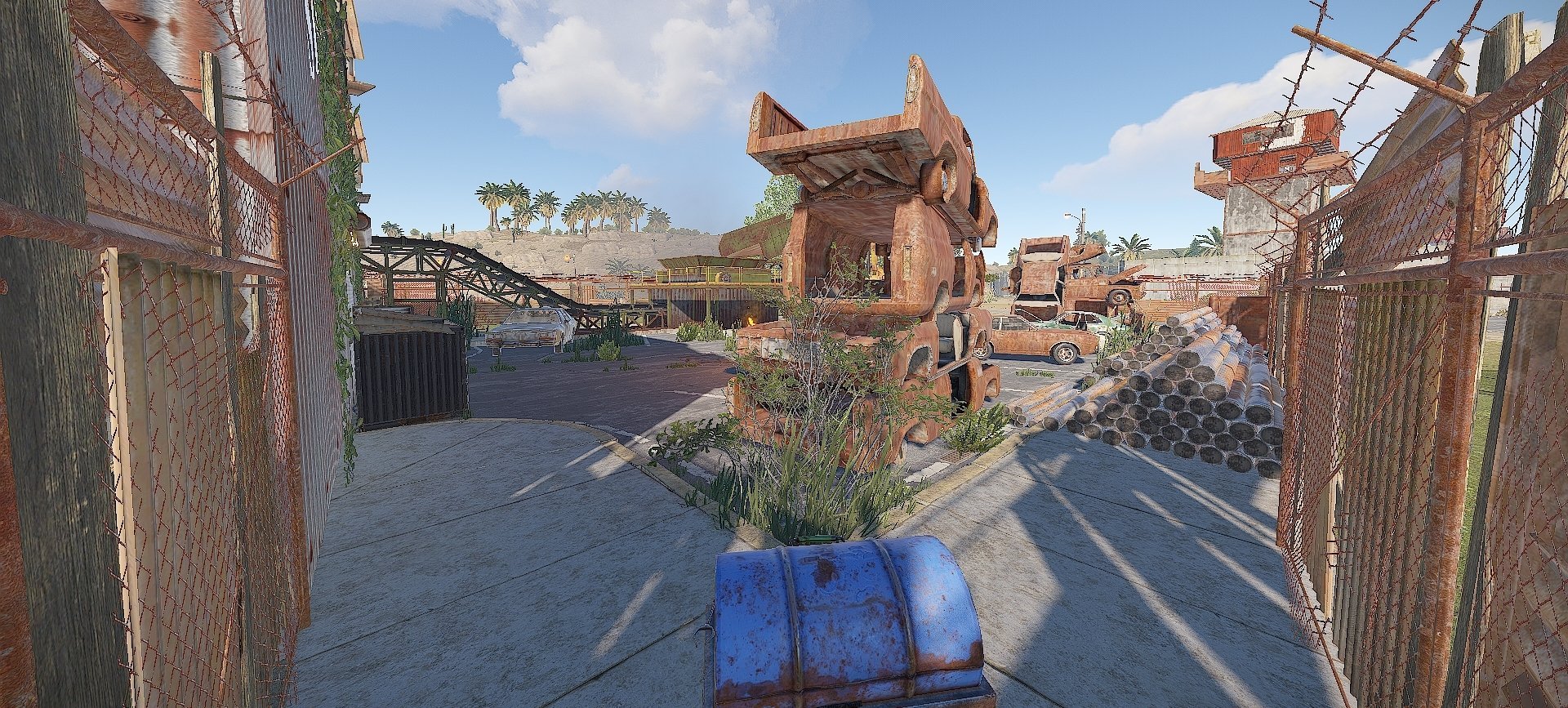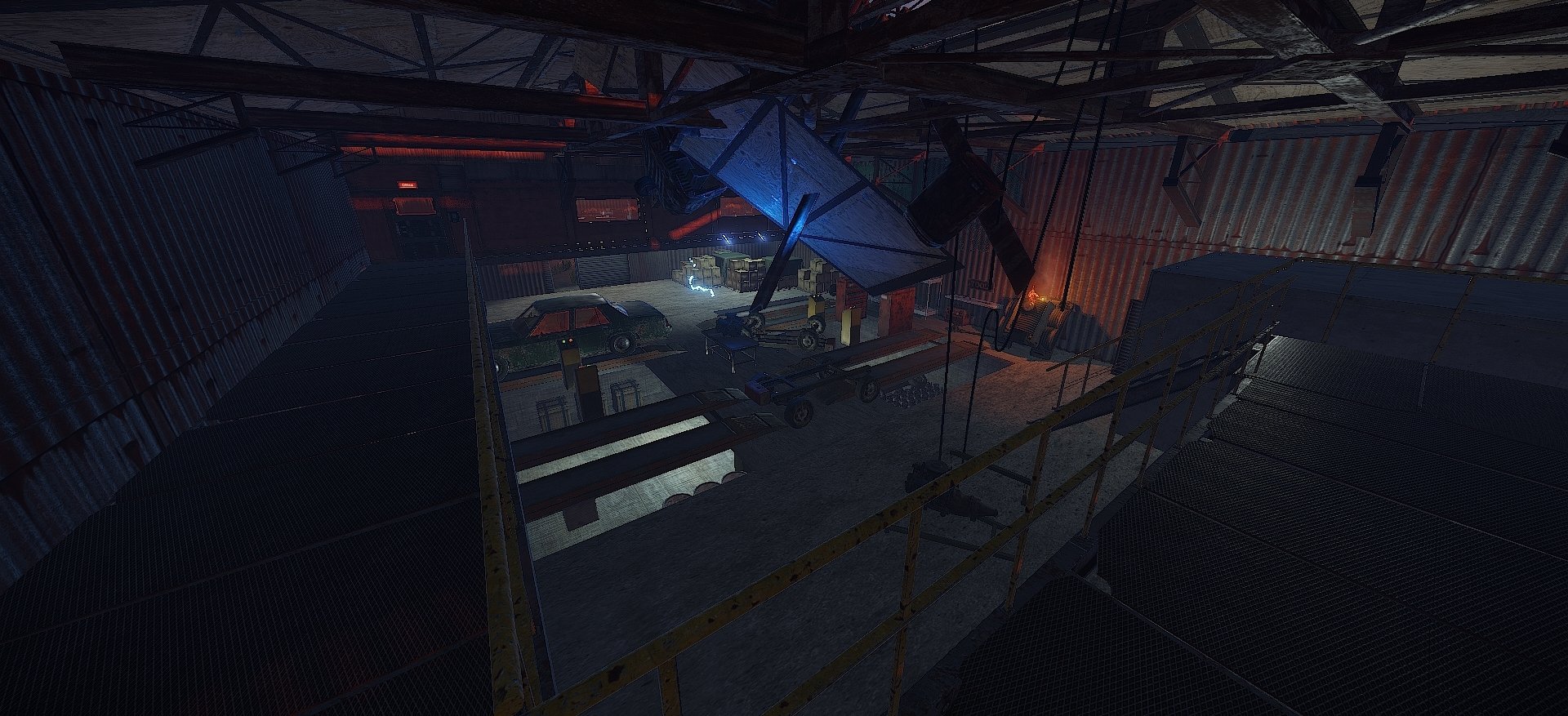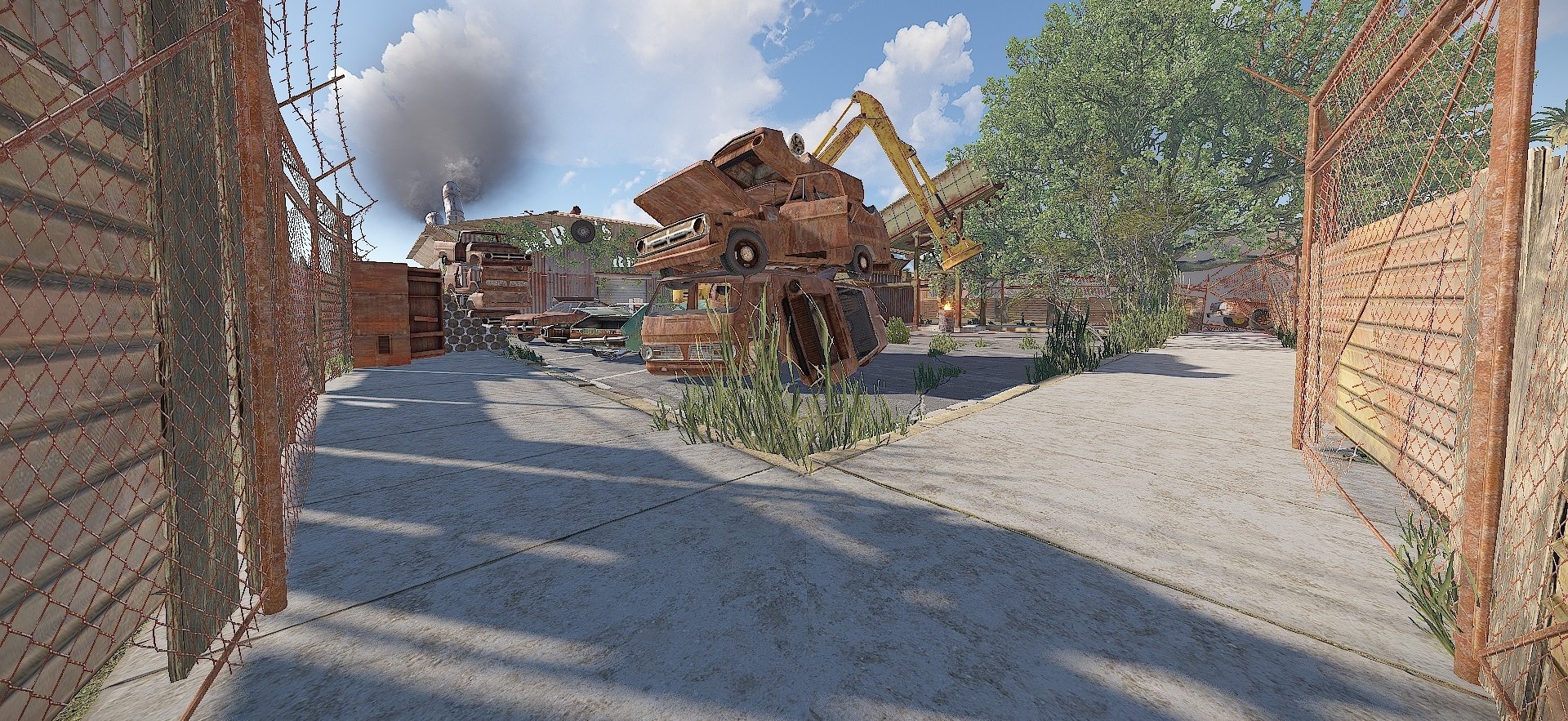In the parking a Magnetic Crane can be found with a shredder and a few shreddable cars which respawn . Crane and shredder works the same way like vanilla Junkyard , pop the fuel , hop in , pickup the cars and get the loot.