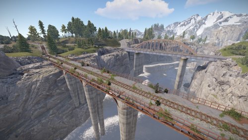 It features a road, river and now a rail network covering most corners of the map, Some standard monuments are here along with a number of new and unique monuments created by me.