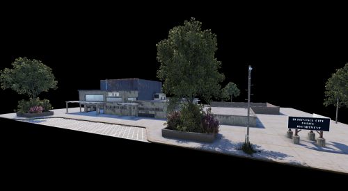 This brick-layered police station, has multiple rooms and outdoor parking spots! Left mostly undecorated, you have the freedom to decorate as you wish, using all the many areas and lots of spaces to make great RP!
