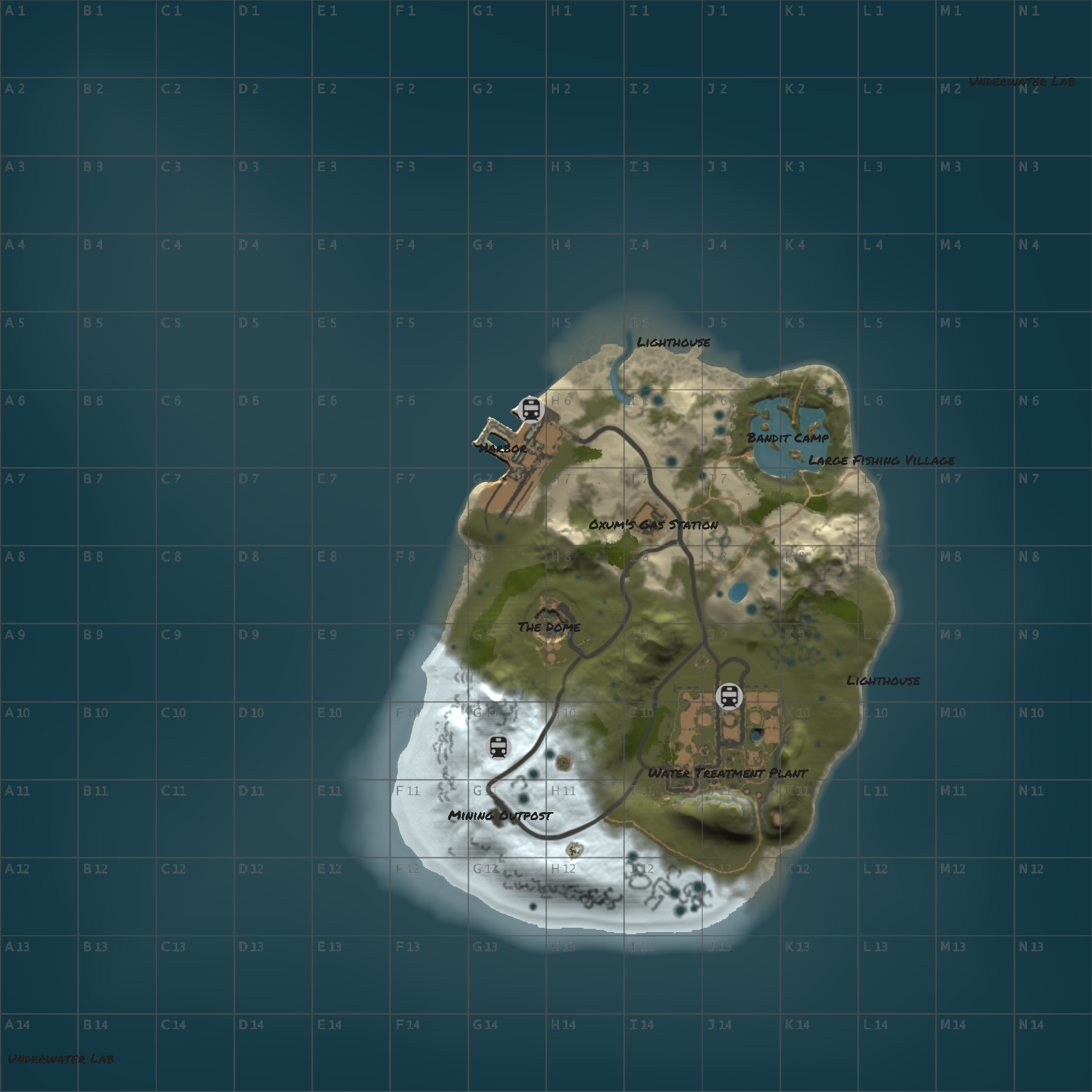 A small, yet beautiful map. Only Facepunch monuments are on the map so players aren't confused when joining. Both oilrigs are on the top and right of the map, close to the fishing villages. Two underwater labs are there also. The map has a full progression system from green card to red card. A small pond is located in the desert, serving as a small attraction for players. Perfect for onegrid or small map servers.