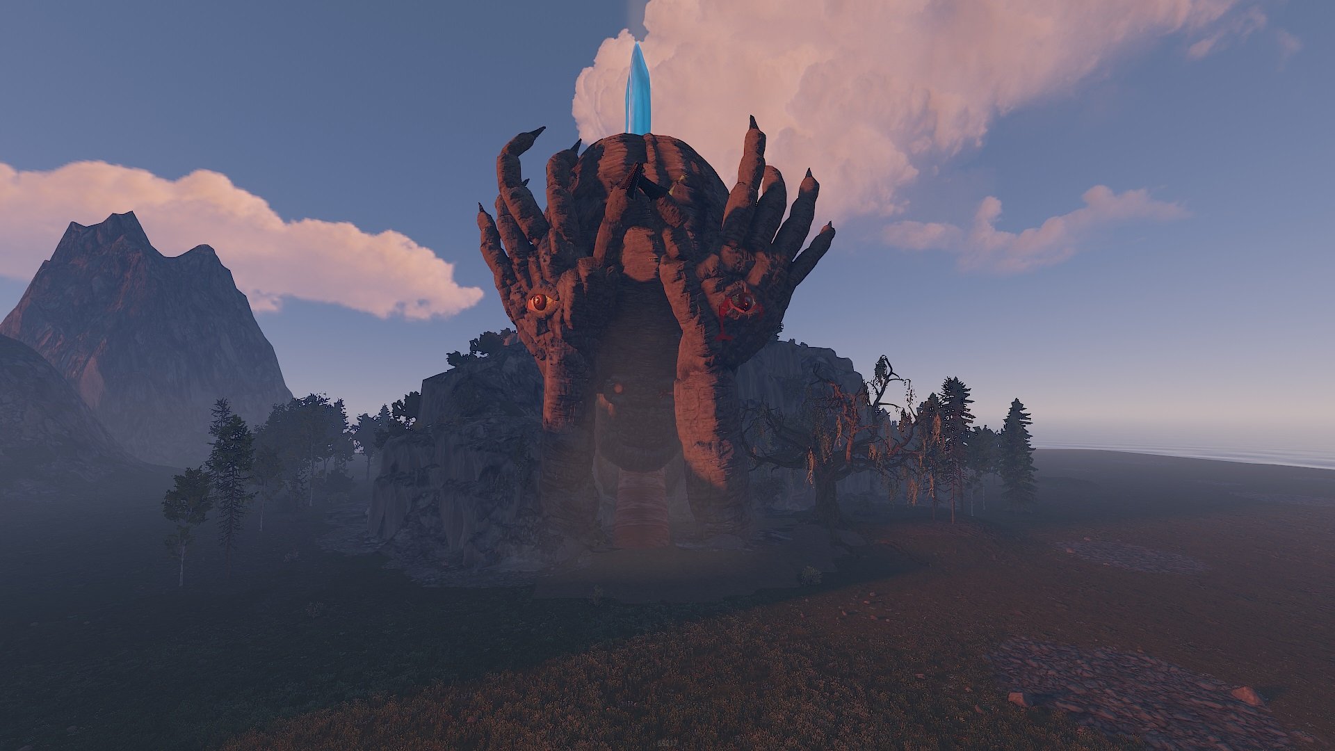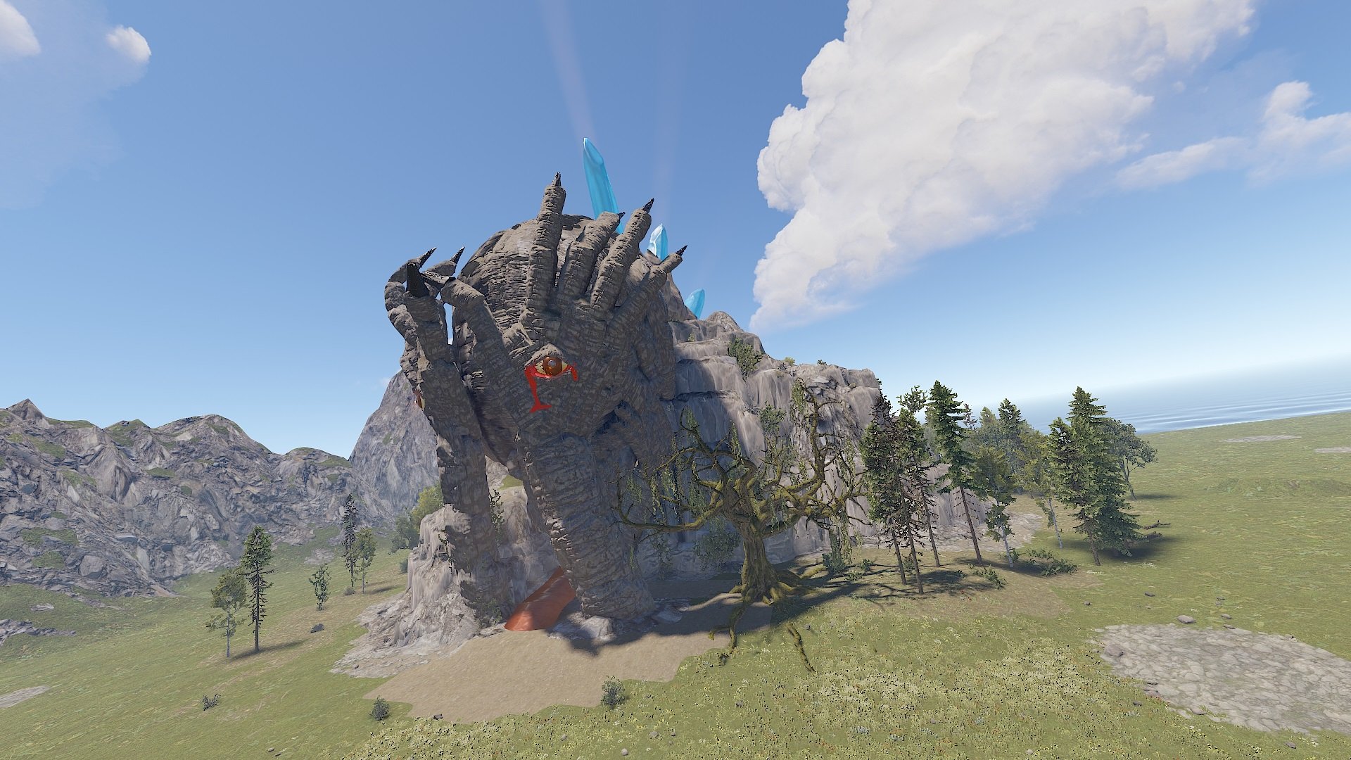- There is a forest topology around the cave, which means that players will be able to cut down the forest