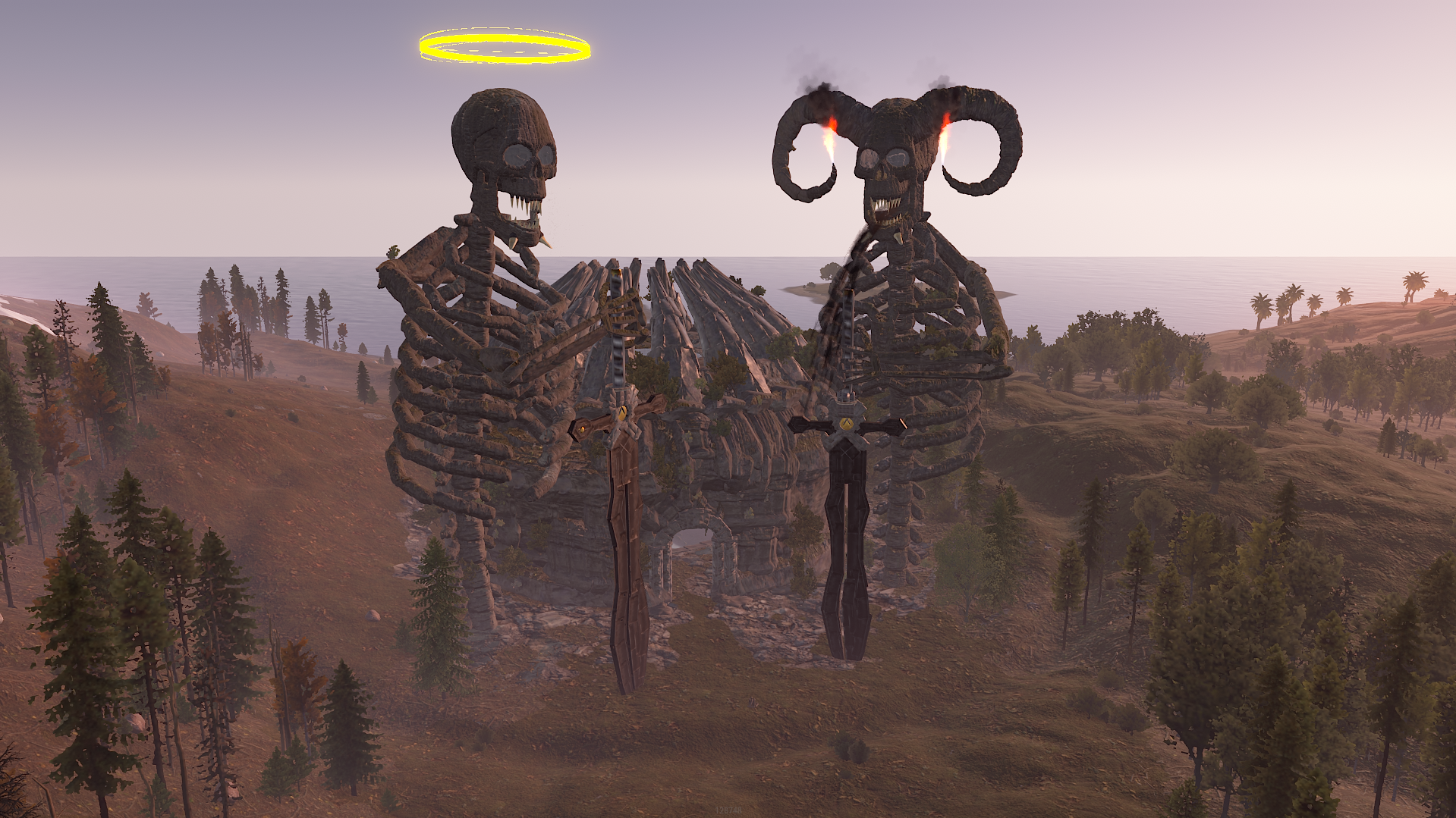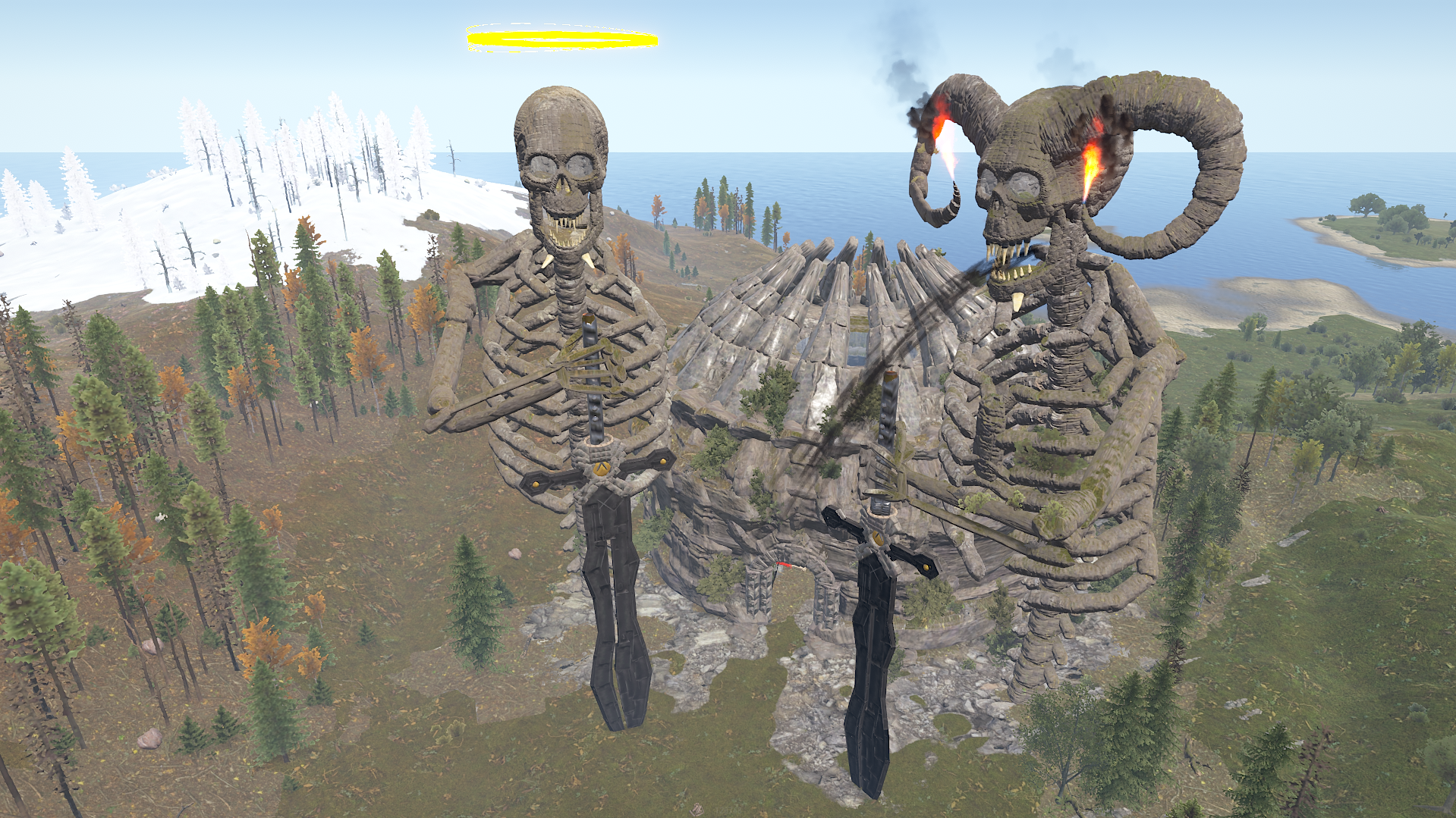 This monument is for building a base in it, it looks great at night and is suitable for Halloween.