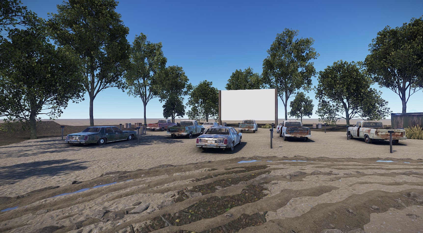Nice prefab for nostalghia since most drive ins are now closed. Some of us still remember the great times there as a child. Theres 6 NPC's added to the Drive in. Lots  of various loot added all around and inside the drive in.