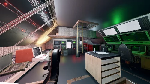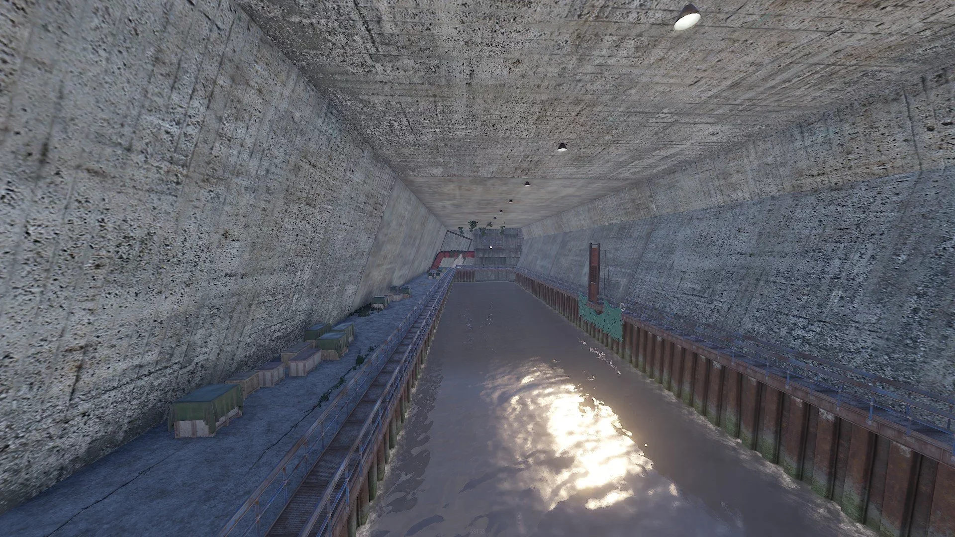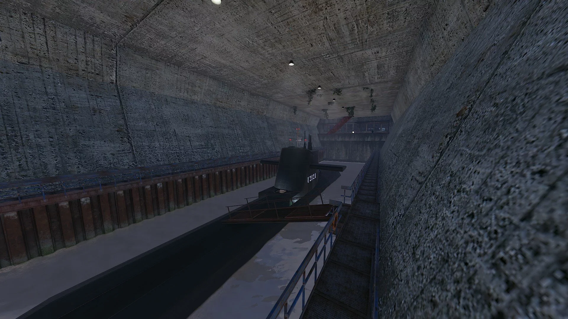 Modern German Submarine Pens - Has 2 Subs, one in dry dock one in a pen. They are to scale and compartments in the approx. areas allowing for playability. Need to do a bit of climbing to allow entry to the dry dock. Sub Pens open from the control room and once the new subs from FP are online it will be updated to accommodate the new underwater features.