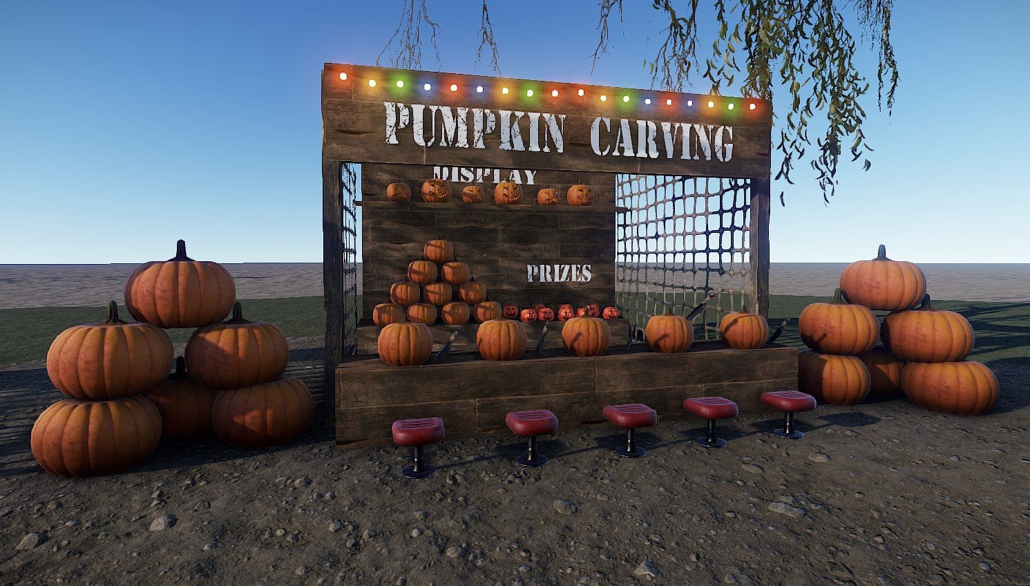 The annual pumpkin festival has 3 NPC's and various loot all around it along with a dunk tank, pumpkin carving, apple bobbing and water gun station. Great prefab for Halloween!