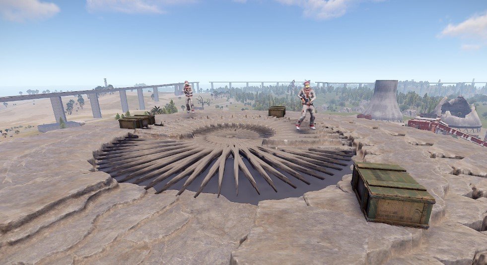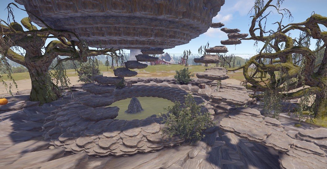 Sphere of Doom is a giant pumpkin with various loot and NPC's inside and out.  I replaced Dome on my Server with this one. It has some parkour to jump in the middle to gain loot as well as outside to get to the very top to gain loot. There is NPC's  up top for those who choose to fly a heli there to just take the military crates. If you would like to kit out your NPC's as i did in the above pictures, i like to use Better NPC. It works very well once you get it set up and you can kit them out in various outfits and they will stay in places you want much better, very configurable plugin.  Nice prefab to add for Halloween to give the players a different monument to explore for the month with a touch of spooky!
