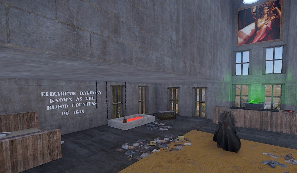 When walking up on this monument you just know something bad has happened here and there's a long history with this mansion and most likely haunted. When you find out why this property is haunted you will be turning every corner watching your back knowing the dead girls are walking the hallways looking for revenge or perhaps Elizabeth Bathory herself. This creepy monument has a very bloody past. Elizabeth Bathory killed many girls in her mansion in the 1600's and bathed in their blood to keep her youth. She is a notorious serial killer in her time. This prefab is sure to bring some Halloween vibe to your server!. There is lots of loot upstairs and downstairs as well as NPC's. There is also loot barrels out around the property. There is a large picture upstairs where you can place a /sil if you like of her to make the prefab even spookier as i did. In the pics above you will see that i use Better NPC's on my server and i can give them kits so they are dressed according to the prefab im using them in. I recommend doing this but there is NPC's placed in there already to give players a fight when looting.