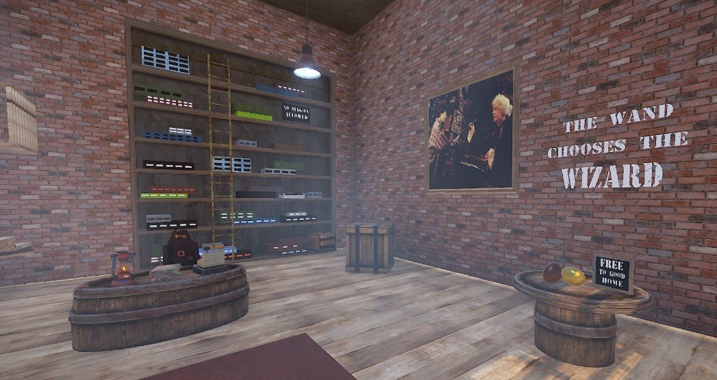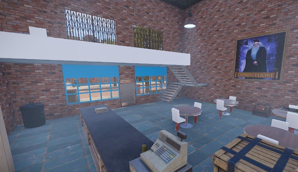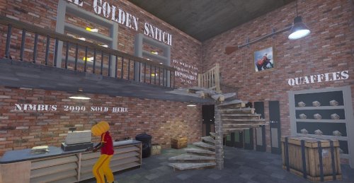 There is six stores inside along with the flying Ford Anglia coming in for a landing. If your looking for a wand or just some equipment to play Quidditch you have come to the right place. There is lots and lots of loot all around as well as NPC's  and there is a recycler on the property. There is colliders on each of the pictures frames to prevent theft. You must go to the top of the frame to place /sil.  This prefab has a lot to explore and is sure to please your players. Ive used Better NPC as you can see in the above pics to kit all of my NPCs accordingly and they work amazing and i highly suggest that. You do have regular NPC's inside still tho.