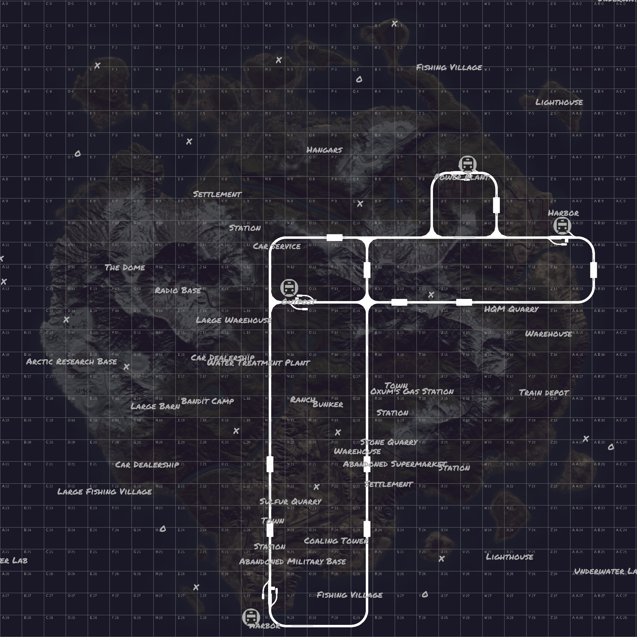 Welcome to abandoned island A post-apocalyptic unique landscape over a mountainous region with many unique monuments to keep your players entertained as well as some great buildable locations right across the full stretch of the map. The railways feature my own railway stations for you to transverse across the map.