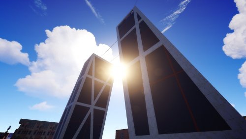- Emblematic towers of Madrid, Spain. Two leaning towers.