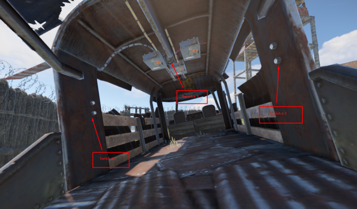 2 turrets on top of fuel tanks and 1 in front of the helicopter