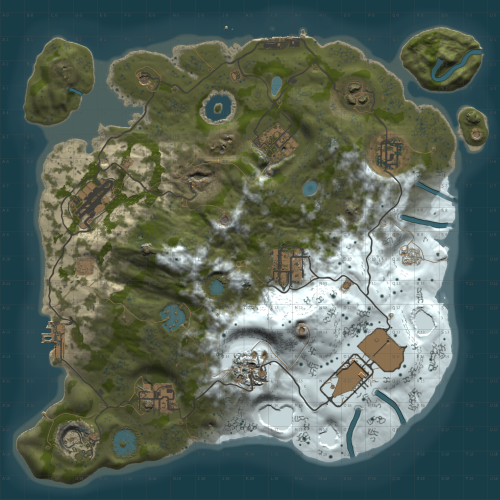 Immerse your players in world packed with monuments and beautiful aesthetics. This 3k map contains every vanilla monument, caves, a zipline path from Power Plant to Train Yard, freshwater lakes, and a custom mineshaft with a secret building area and loot. Below is a full list of monuments included.