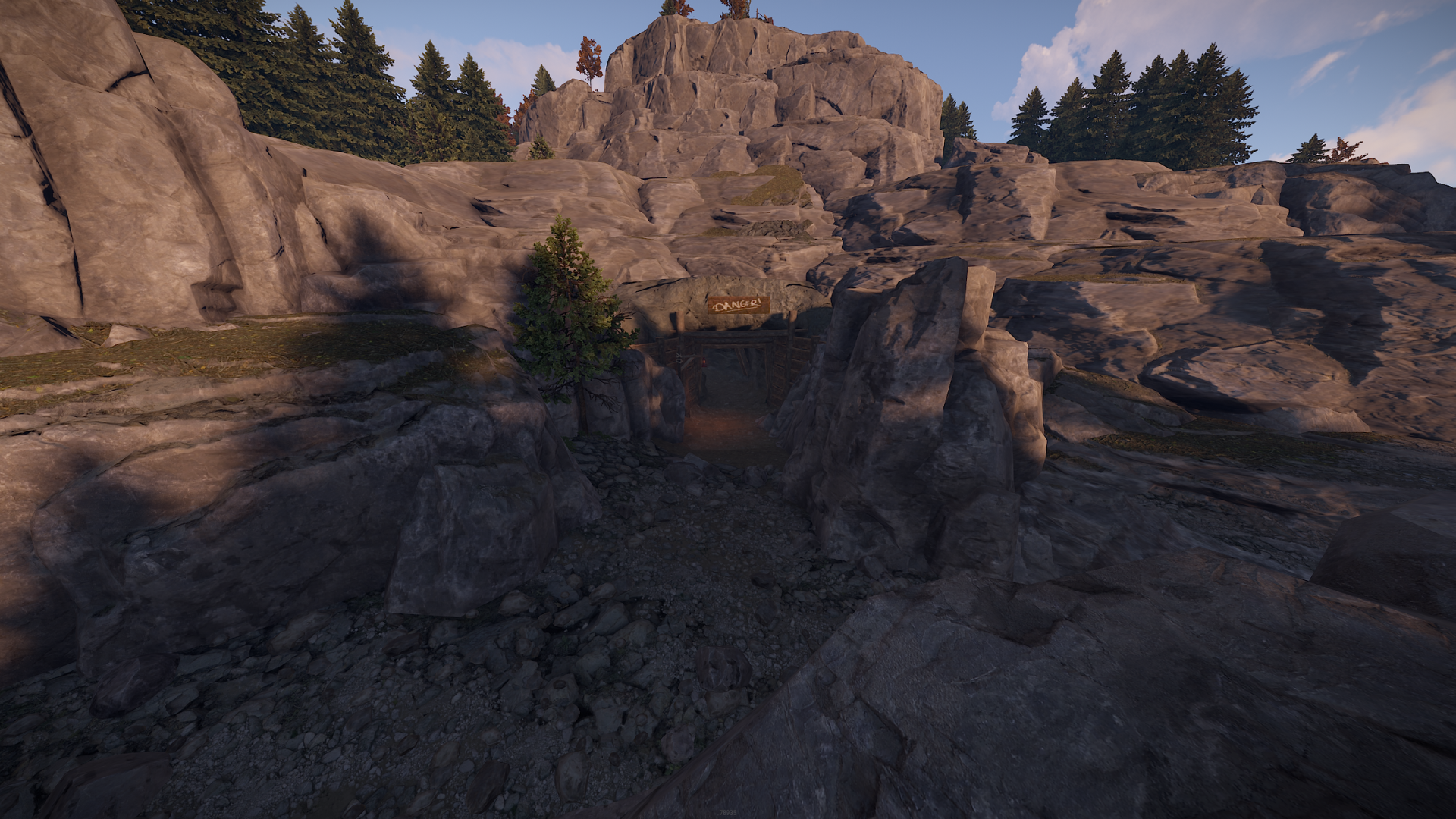 All monuments are vanilla. There is one custom mineshaft with loot and a secret building area inside.