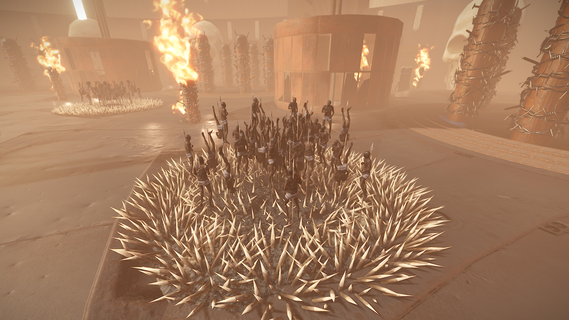 - Traps, Watchtowers, Barricades, Poisonous liquid and fire.