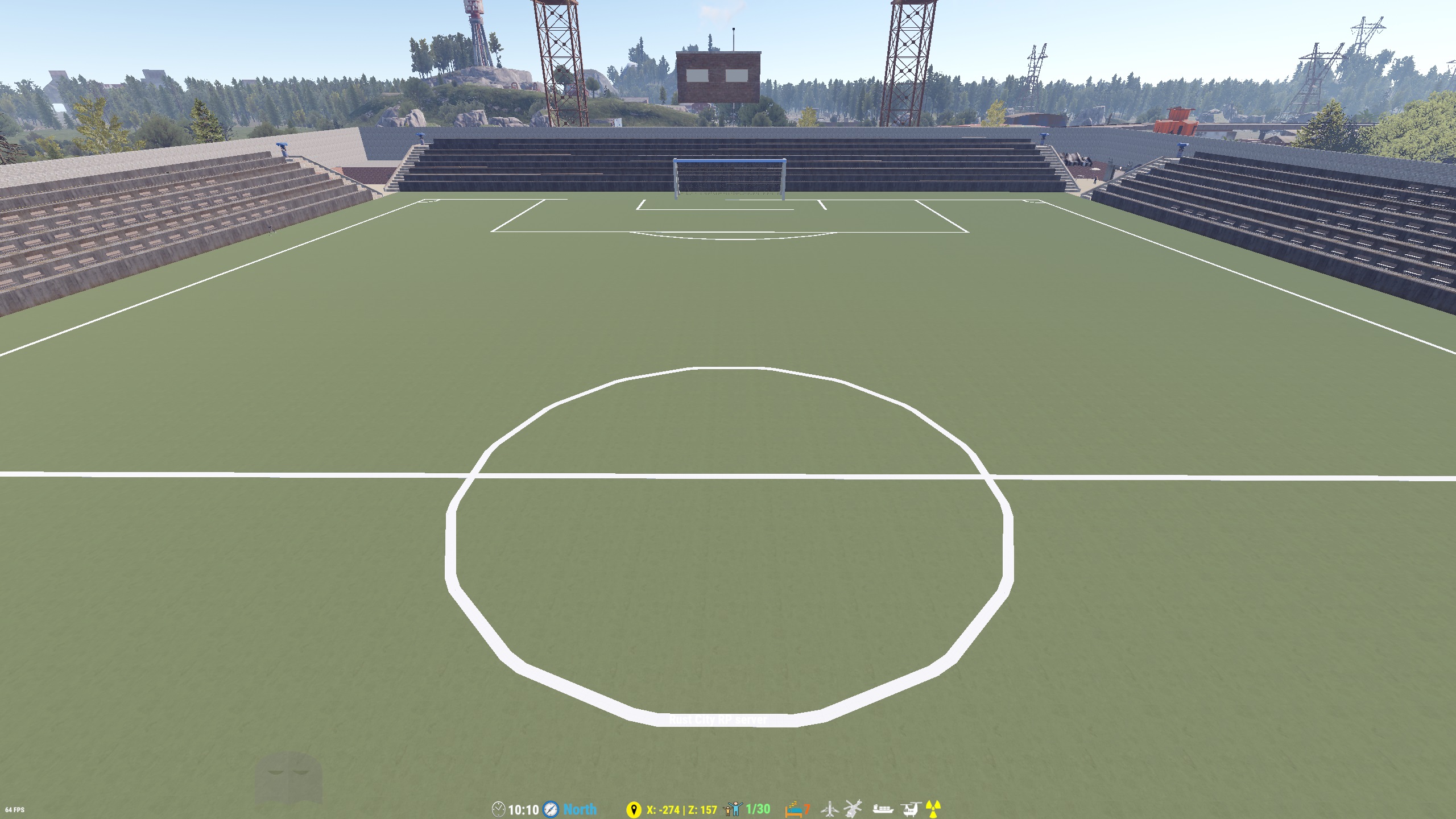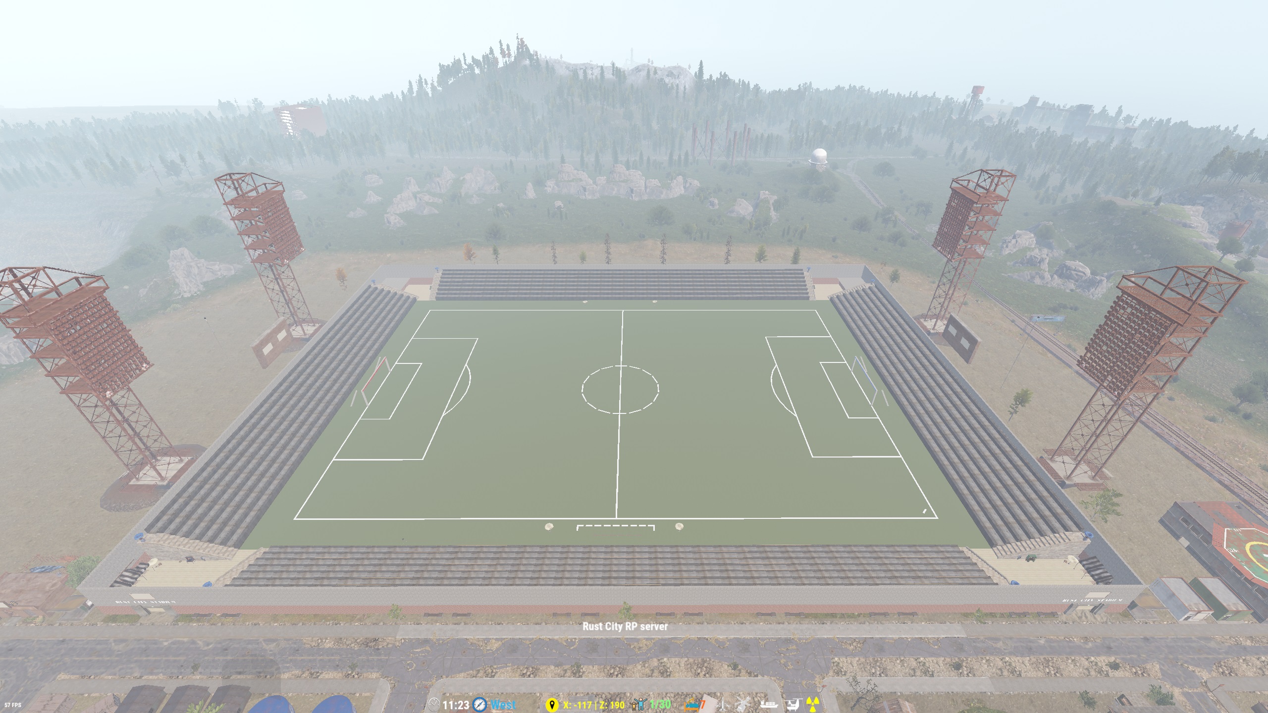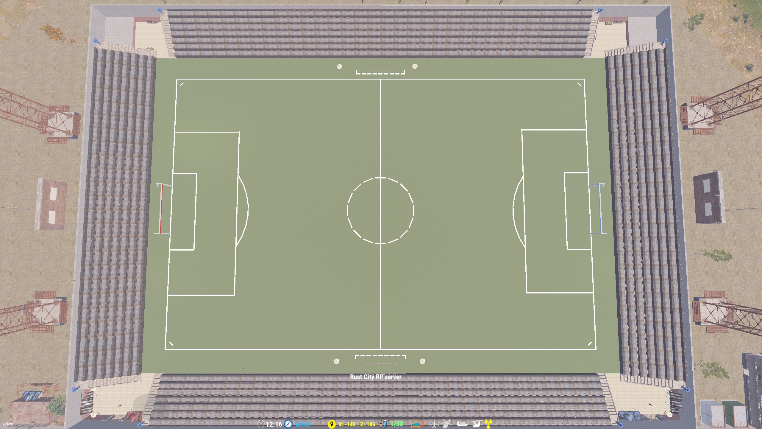 This huge football/soccer stadium can be used as a custom monument or as a field to play the custom plugin game ‘Rust League’
