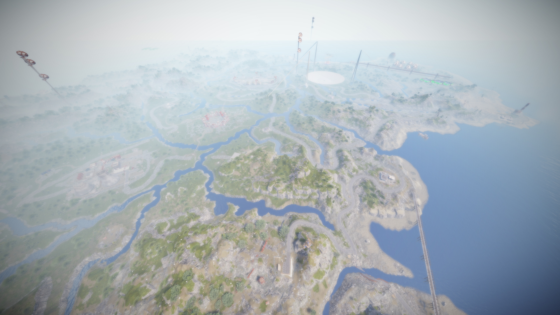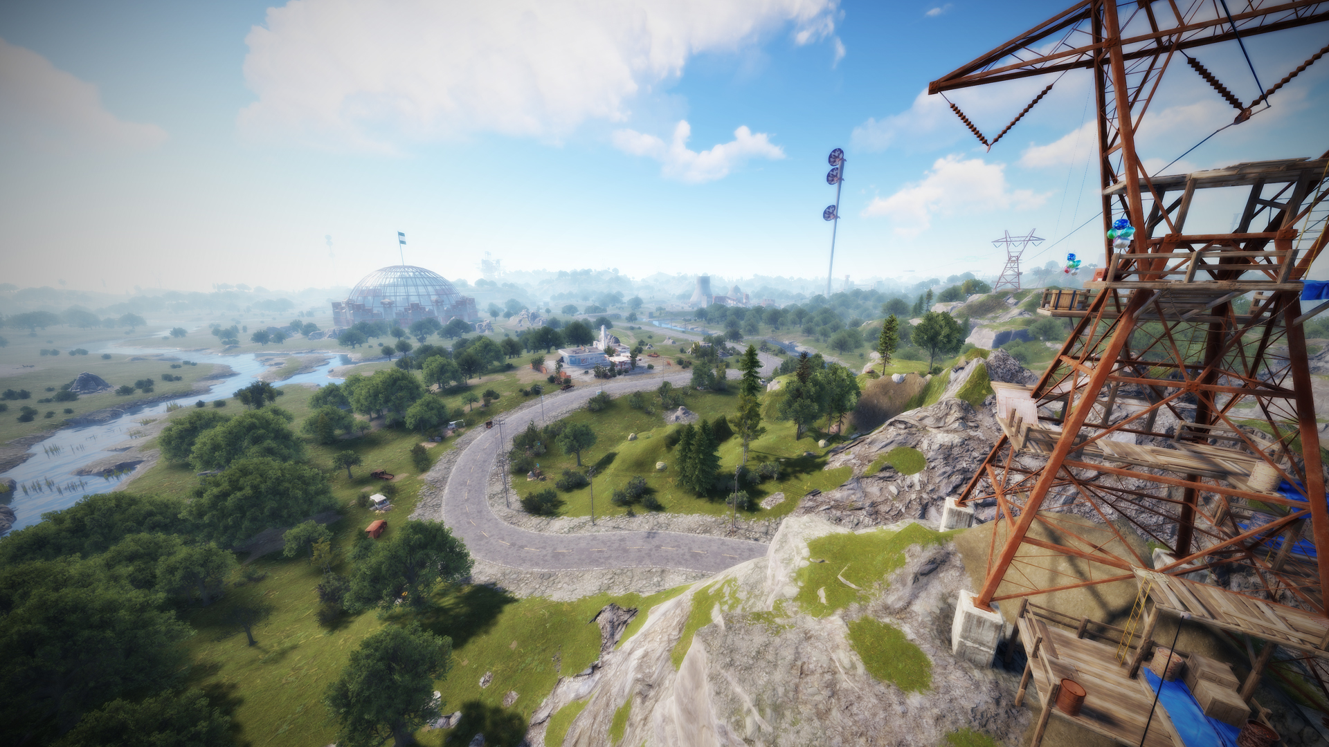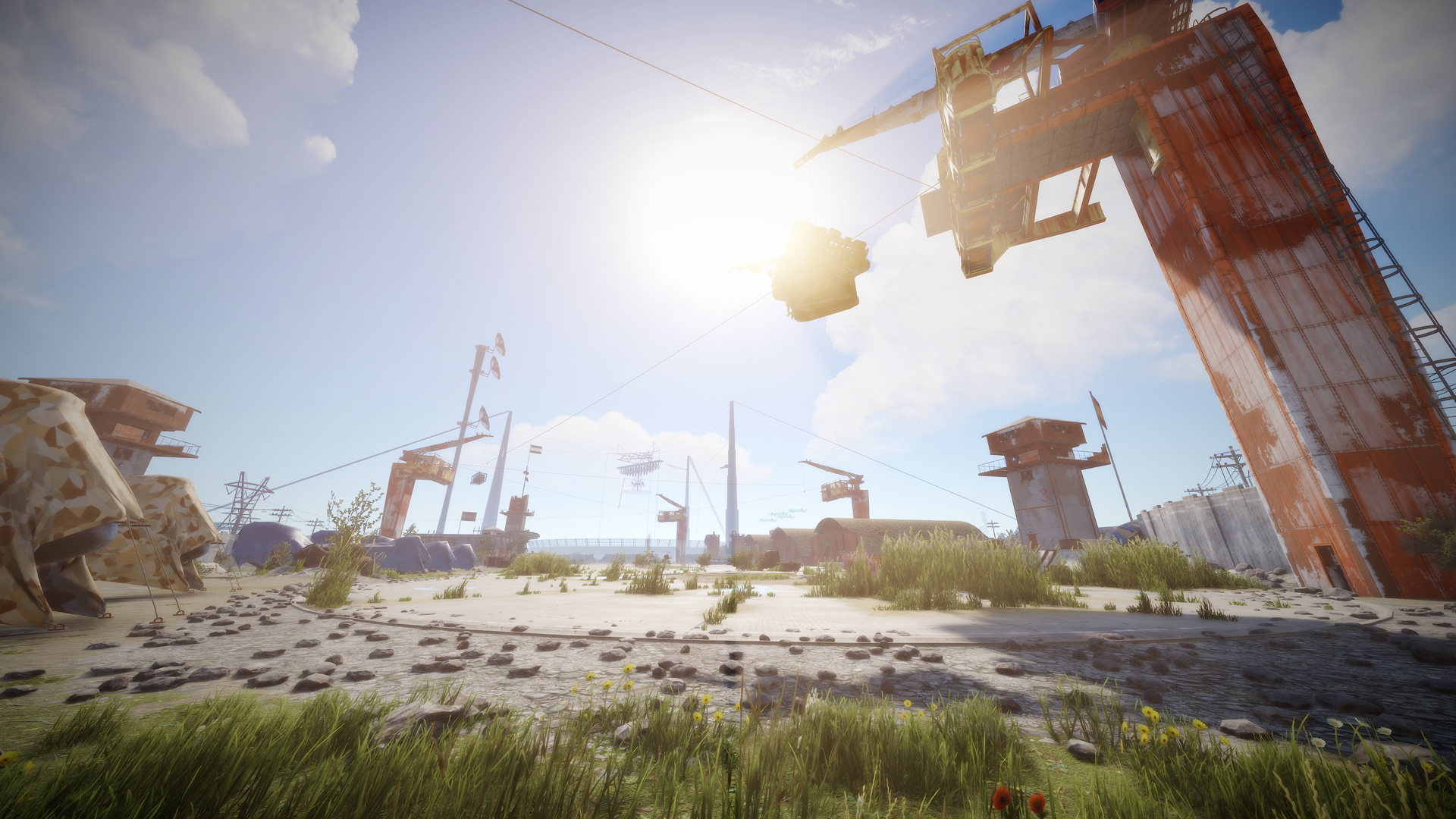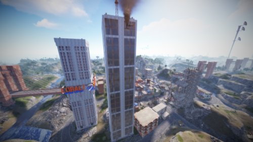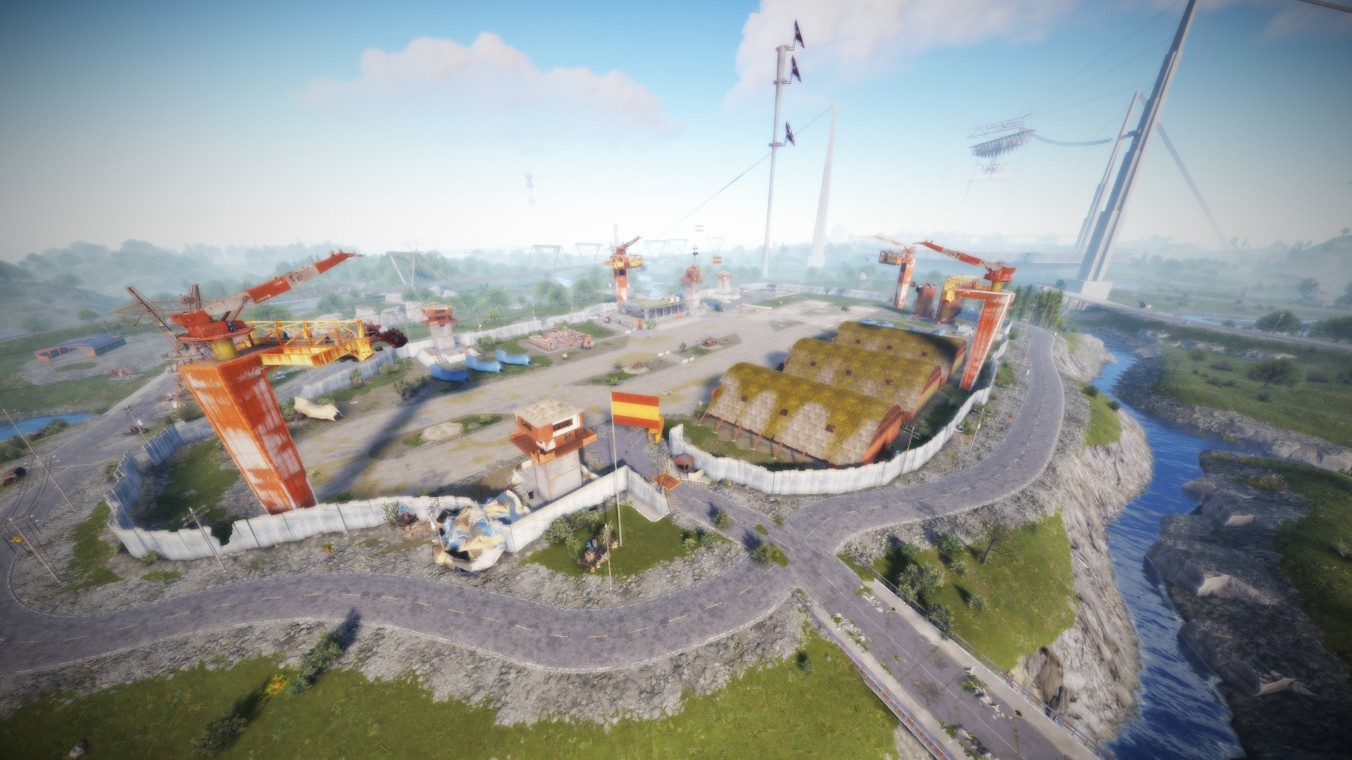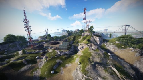 • Airfield (Customized, contains platforms with cranes, custom loot and npcs. Several zip lines with which you can cross the entire Aerodrome, in addition to a tank that guards this site)
