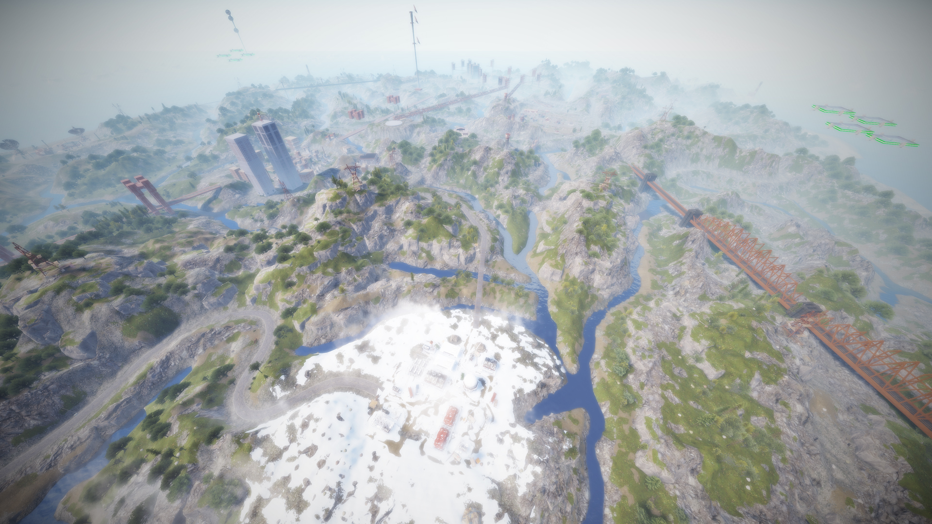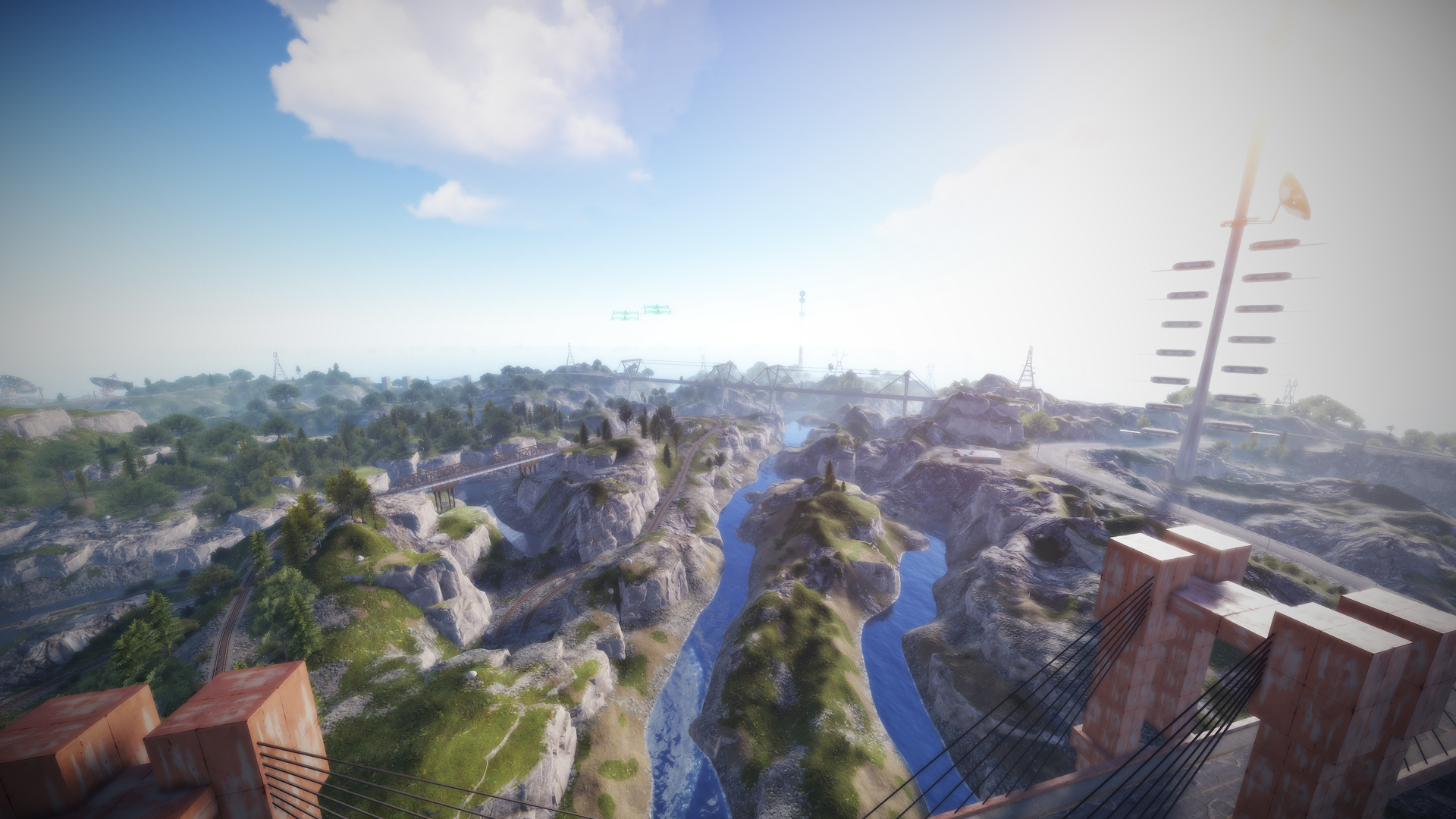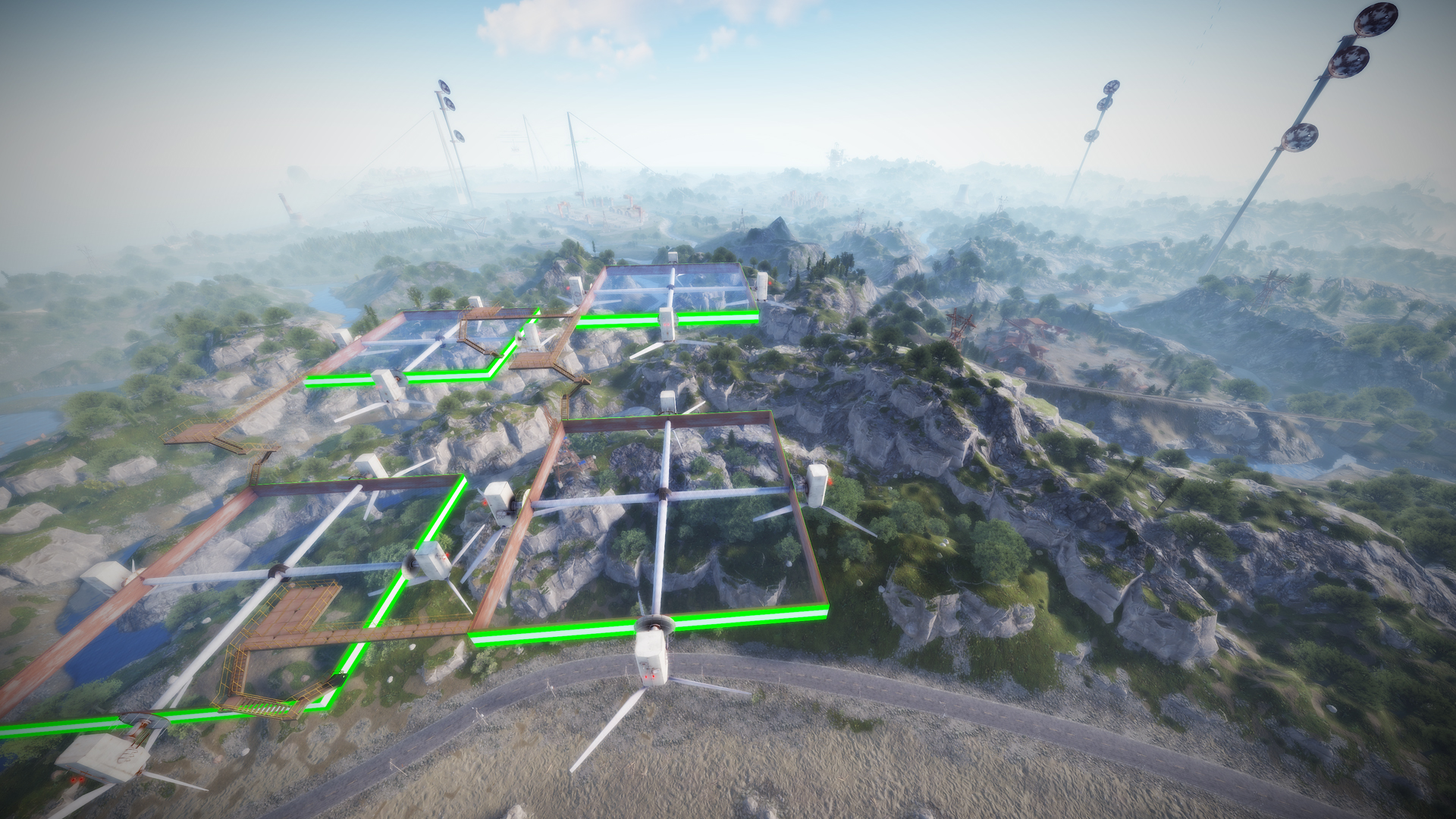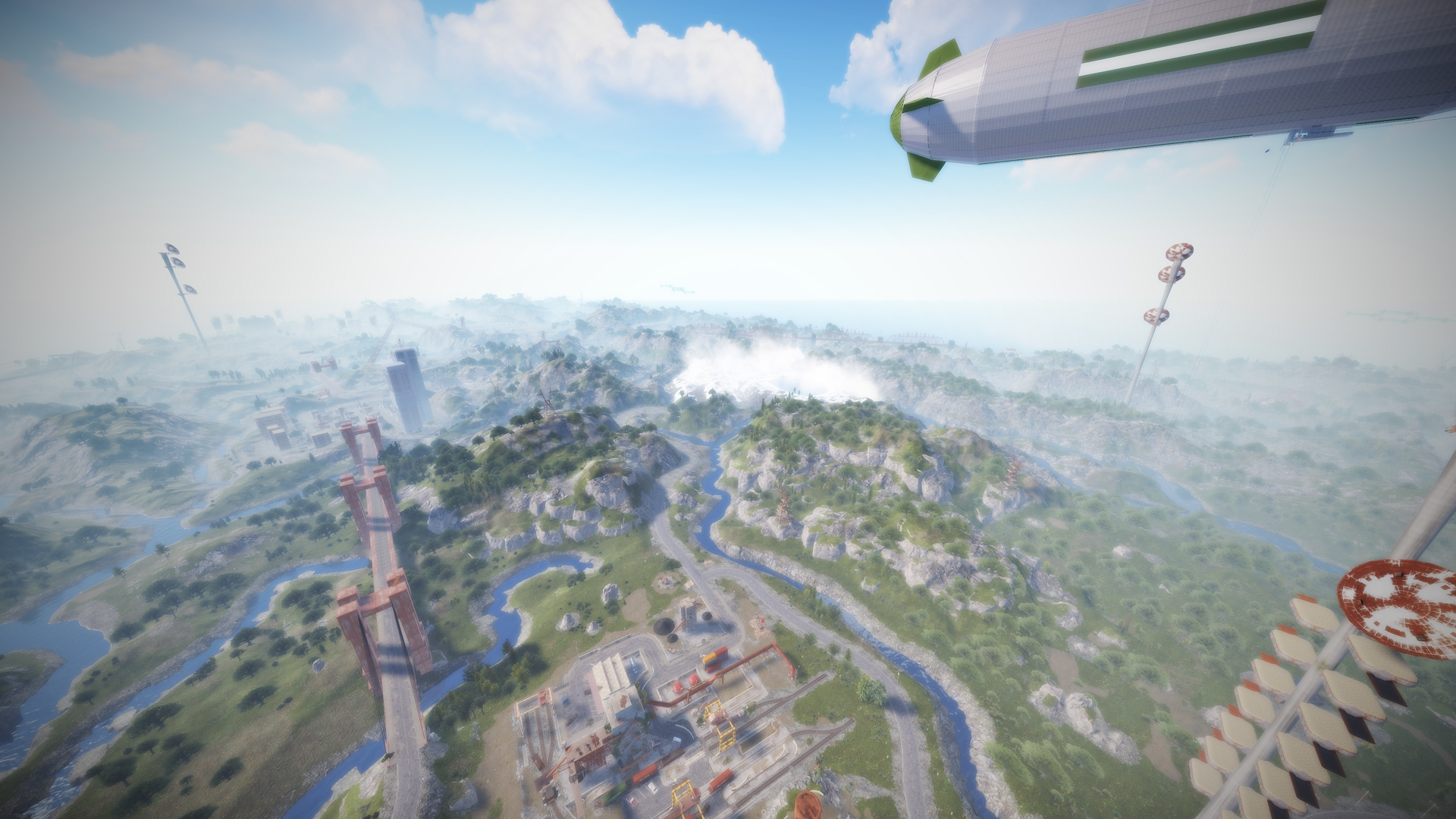 • Airfield (Customized, contains platforms with cranes, custom loot and npcs. Several zip lines with which you can cross the entire Aerodrome, in addition to a tank that guards this site)