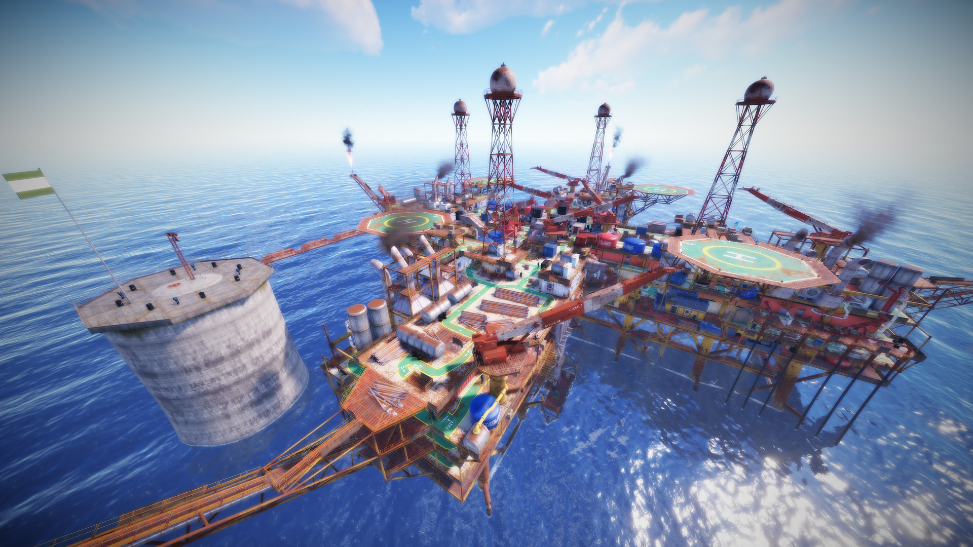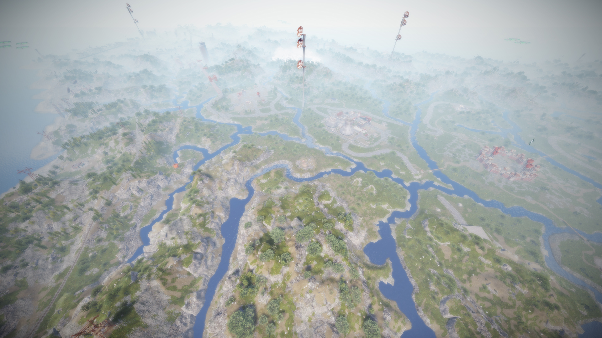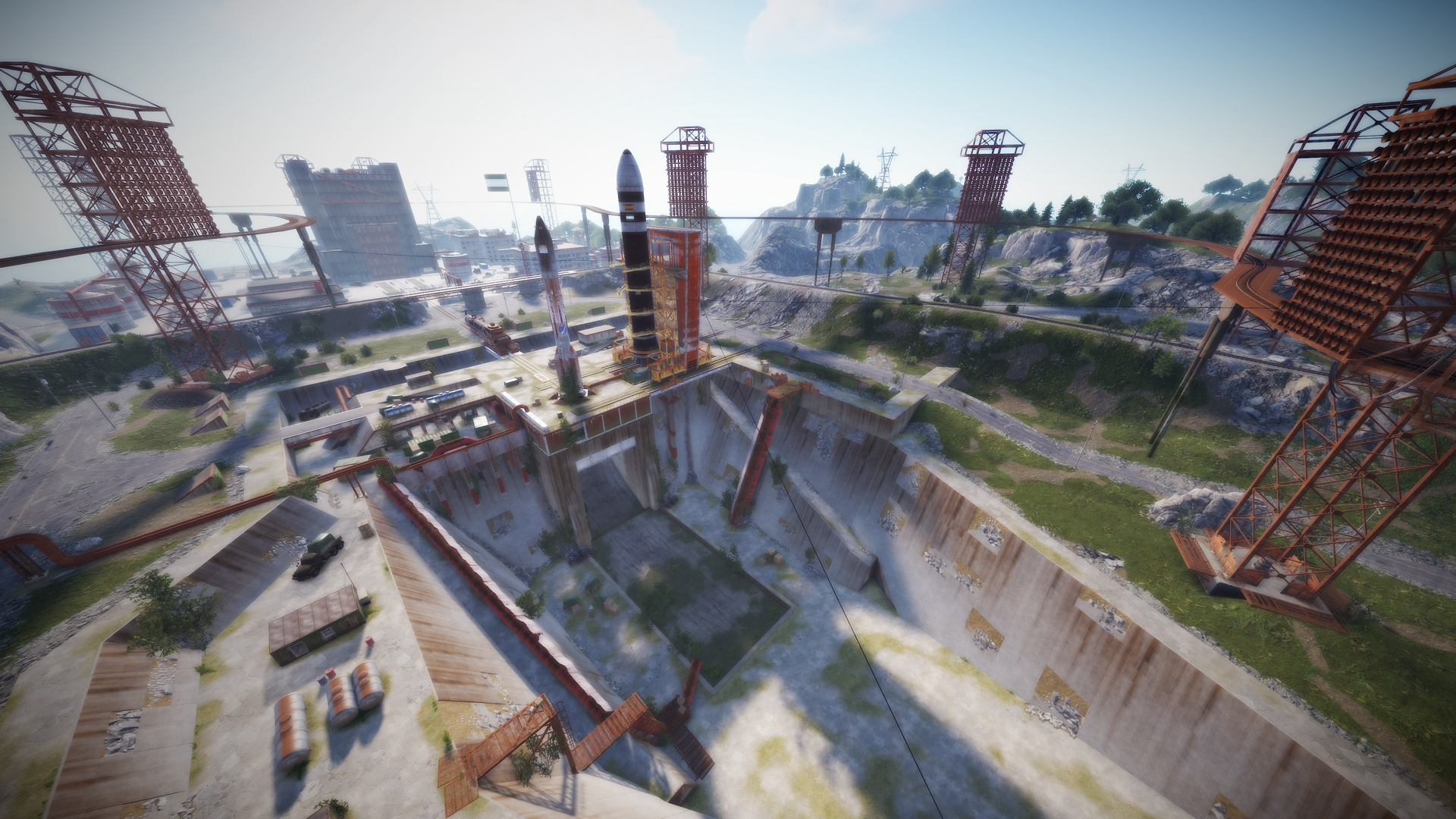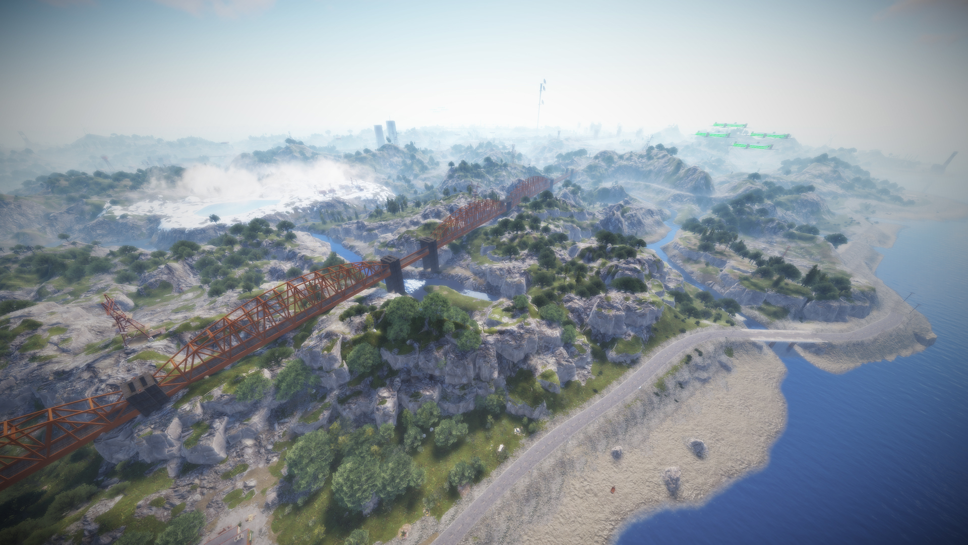 • Airfield (Customized, contains platforms with cranes, custom loot and npcs. Several zip lines with which you can cross the entire Aerodrome, in addition to a tank that guards this site)
