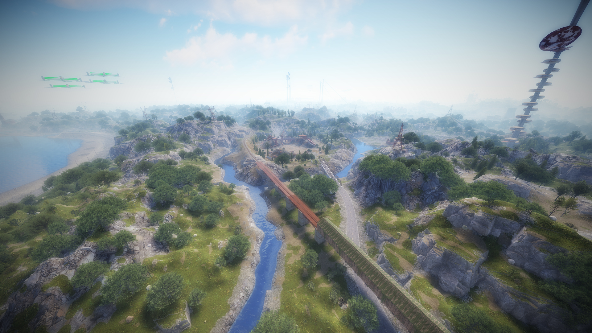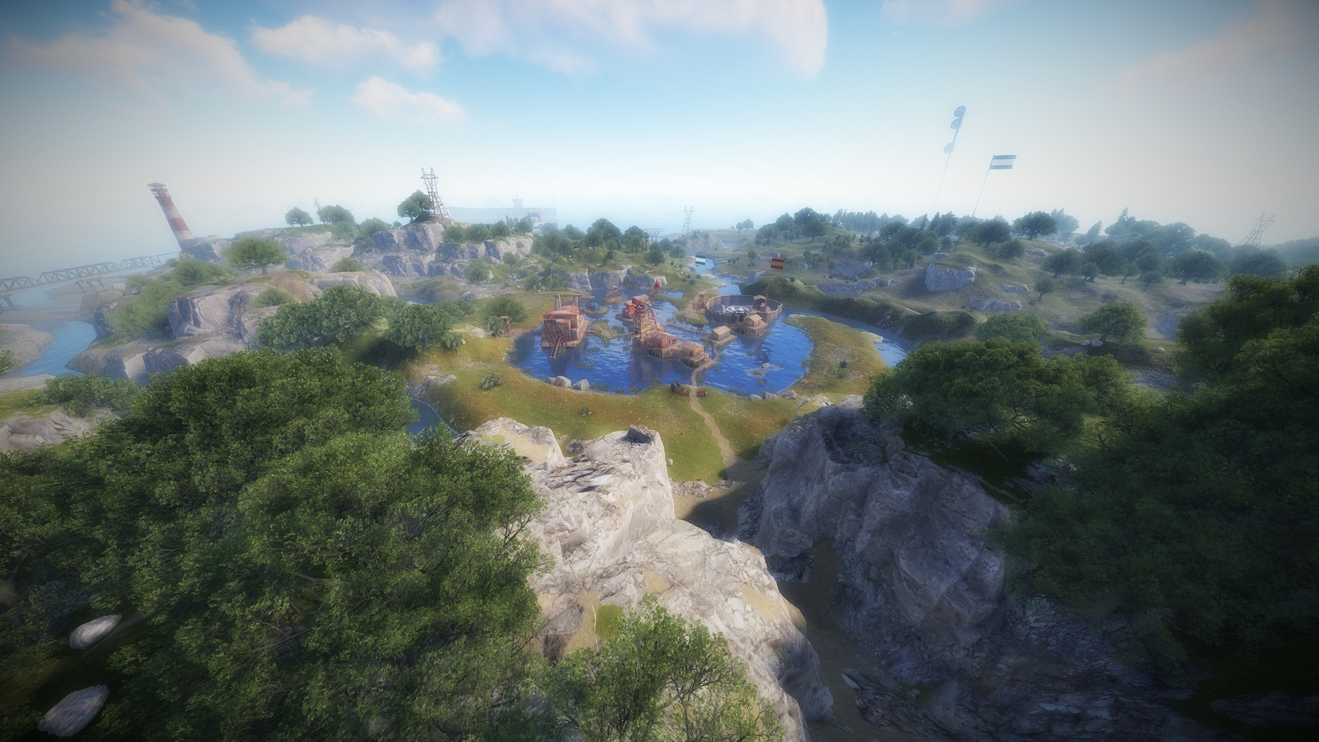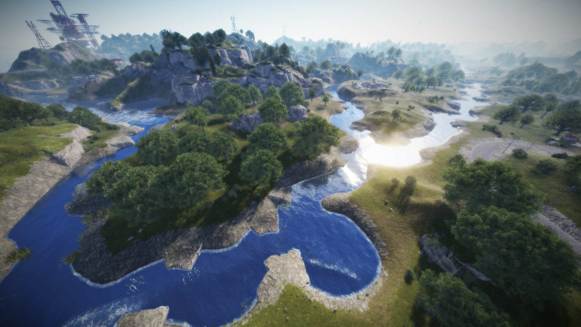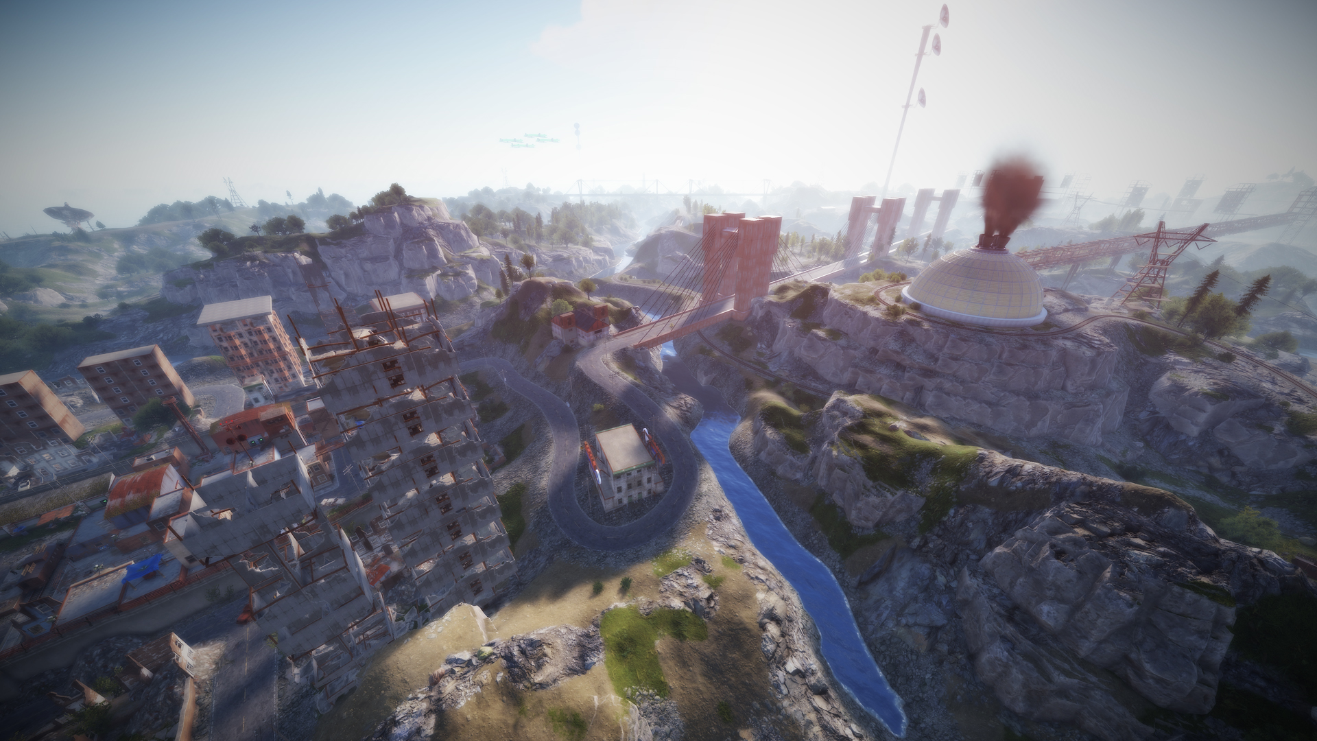 • Airfield (Customized, contains platforms with cranes, custom loot and npcs. Several zip lines with which you can cross the entire Aerodrome, in addition to a tank that guards this site)