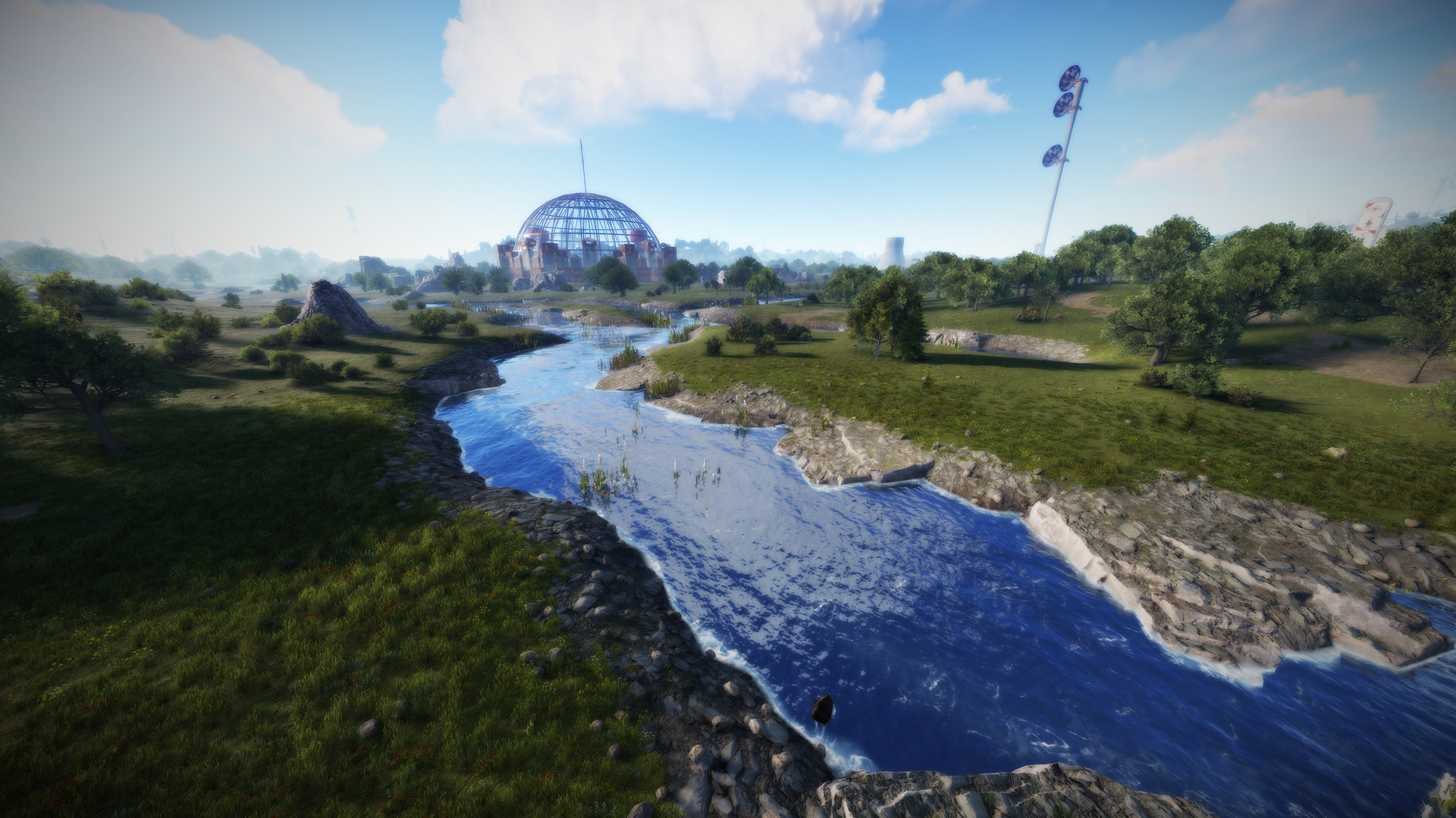 • Satellite dish (Customized, with attack helicopter respawn, recycler, custom loot, npcs and a small resting place)