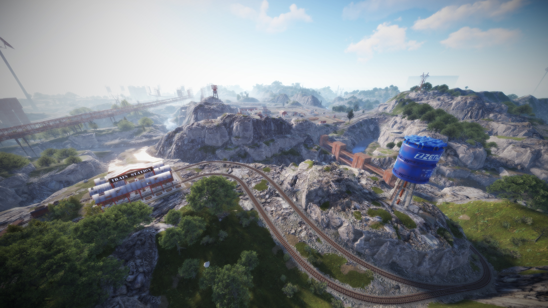• Train Stations, with waiting room, loot and NPC, with secondary rail respawn.
