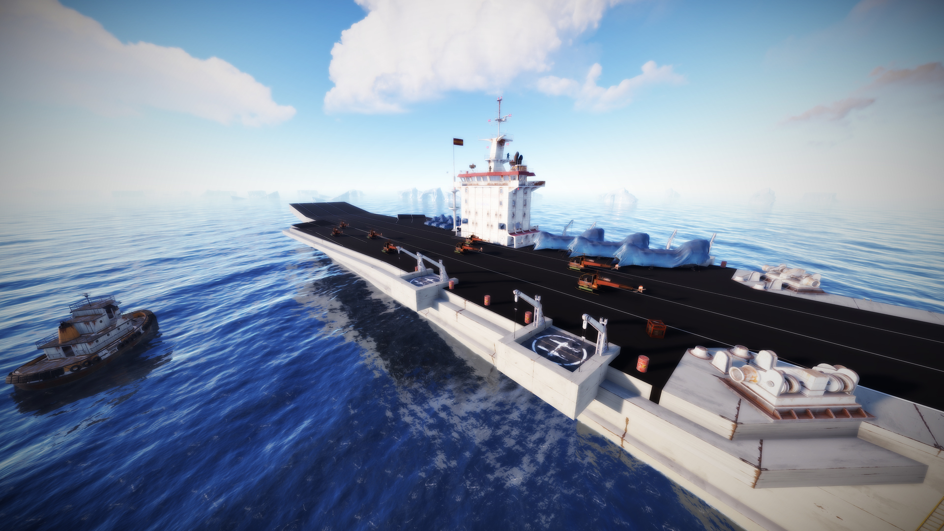 • Aircraft carrier, the aircraft carrier has been created especially for the Biplane plugin, you can also use it as a monument, it contains helicopters, loot and NPCs.