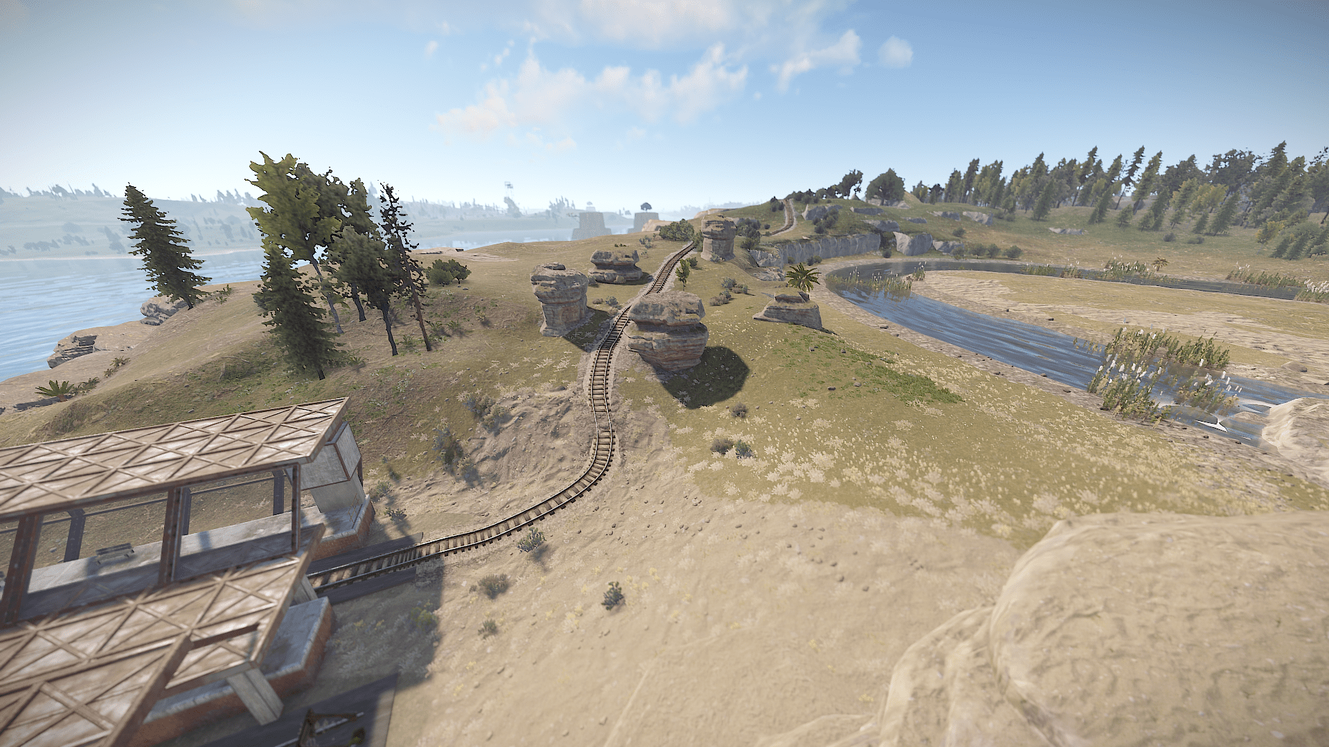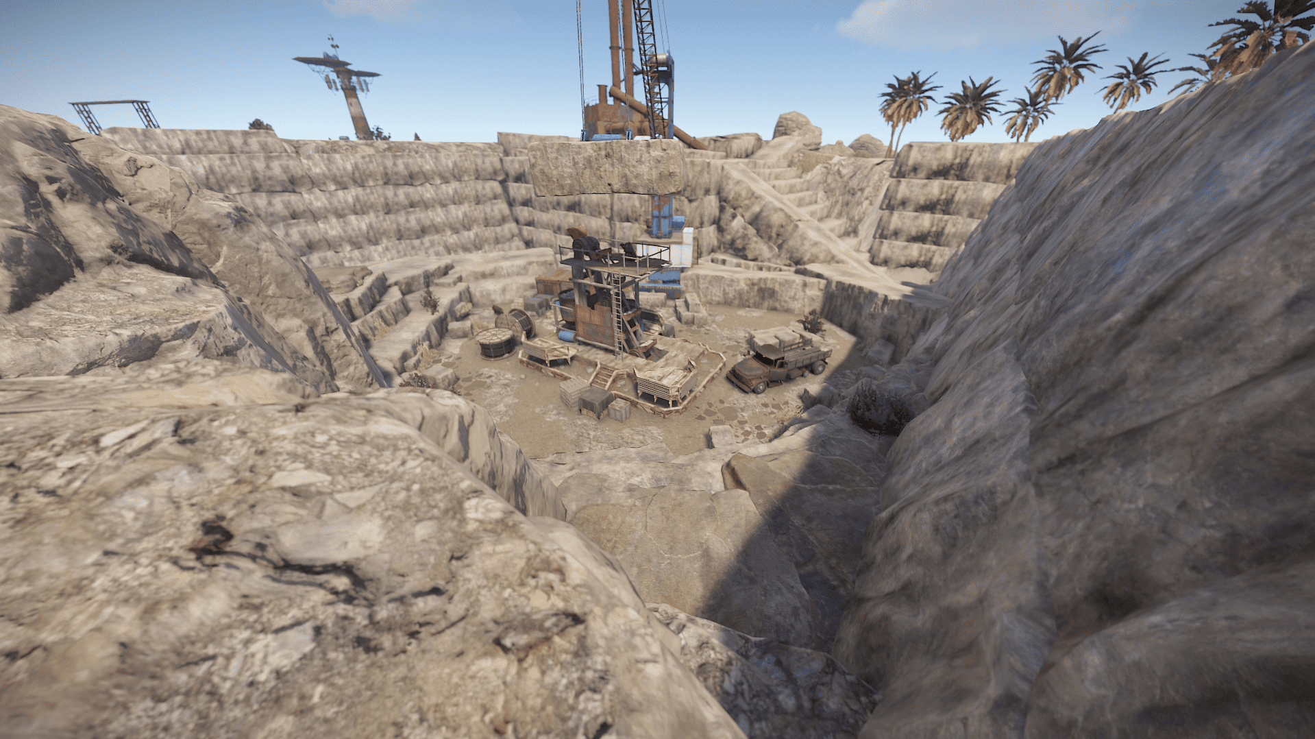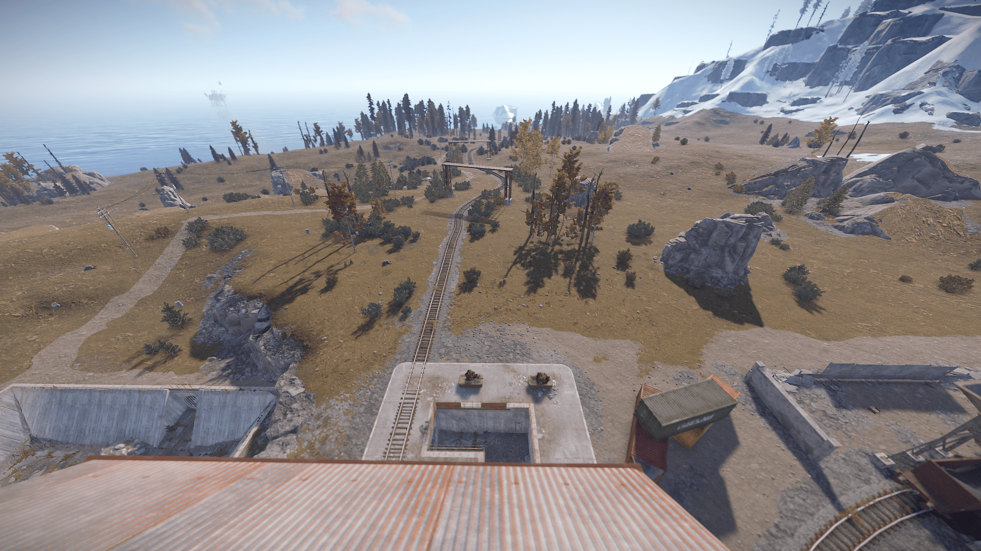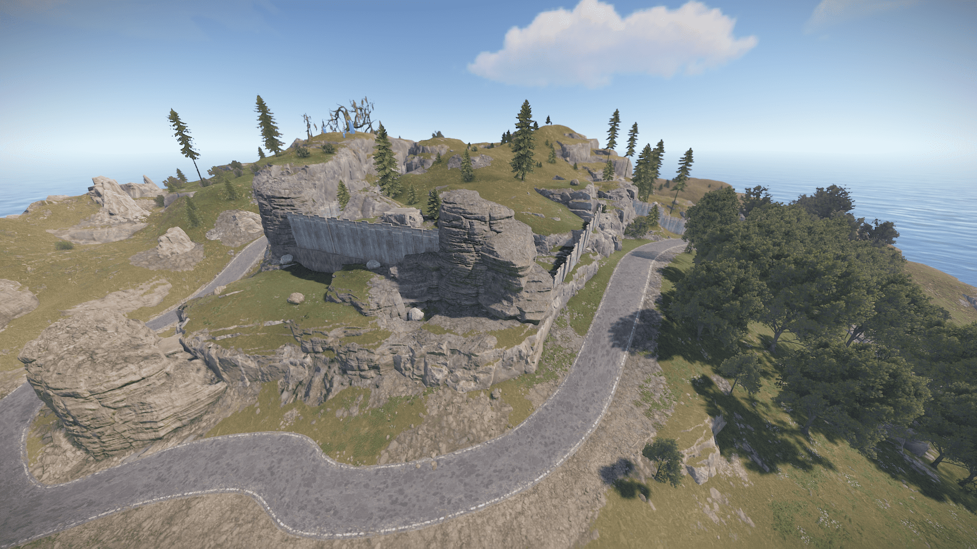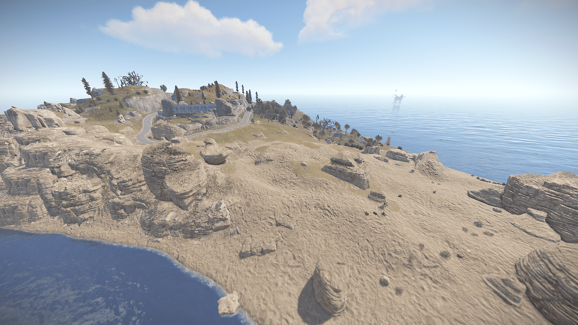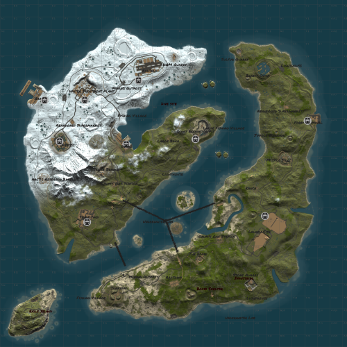 Right island featuring mostly desert biome holds most hard difficulty monuments making it difficult to survive due to the harsh enviroment and difficulty of getting loot compared to the other islands.
