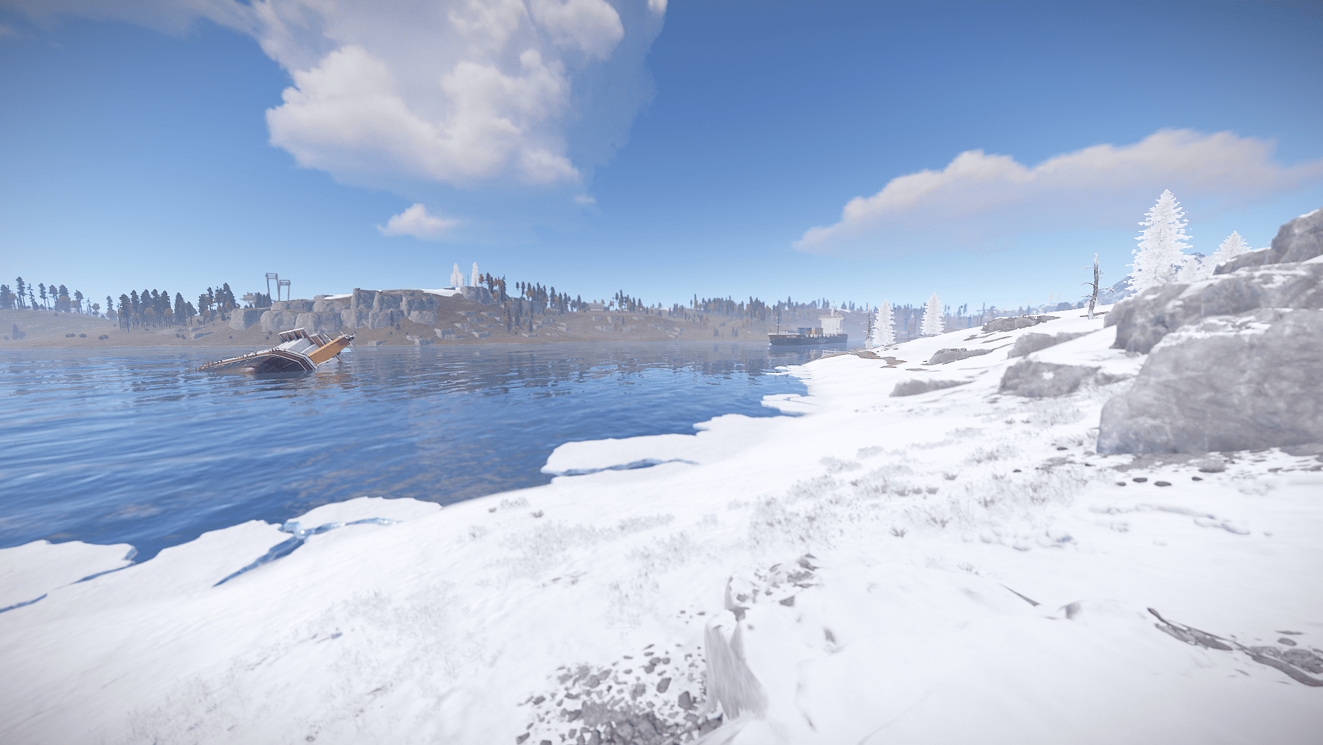 The left island with the winter biome holds easy to medium difficulty monuments and it's easier to navigate than the right desert island.