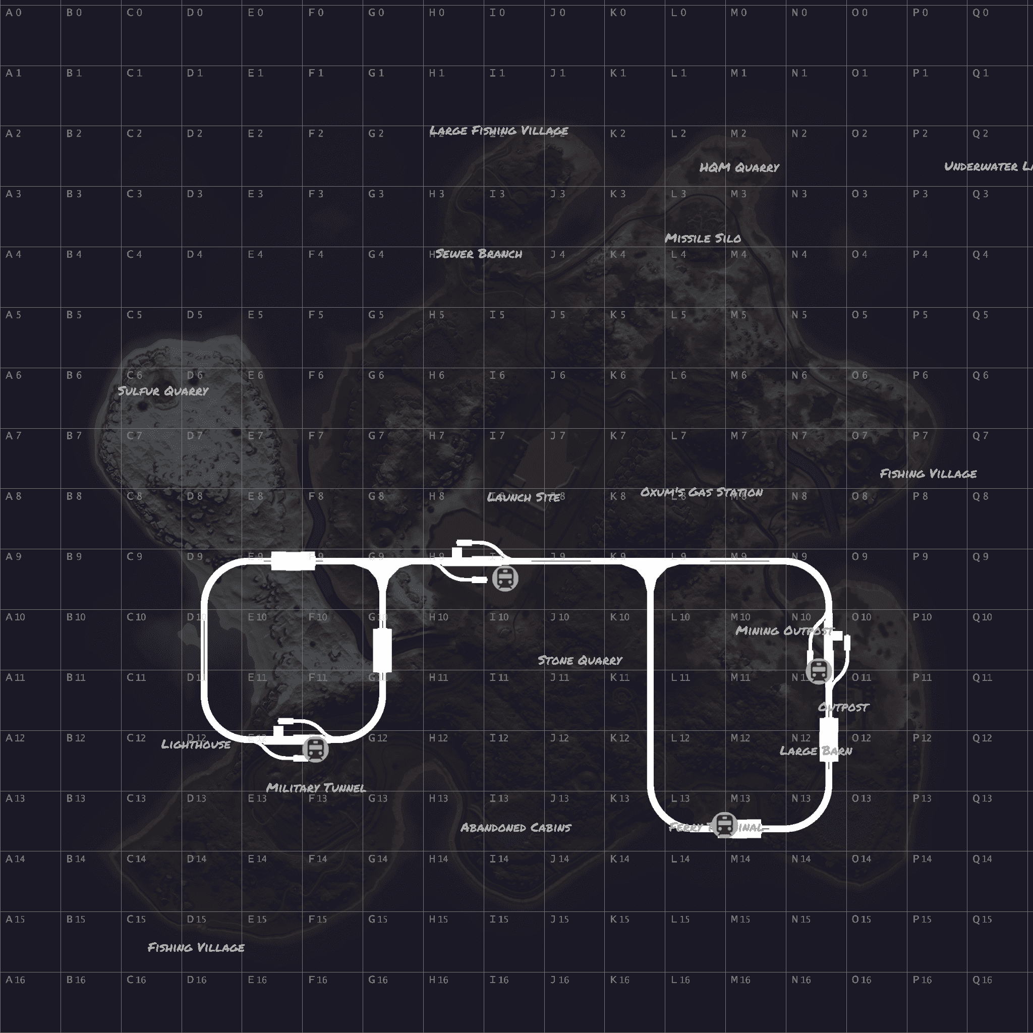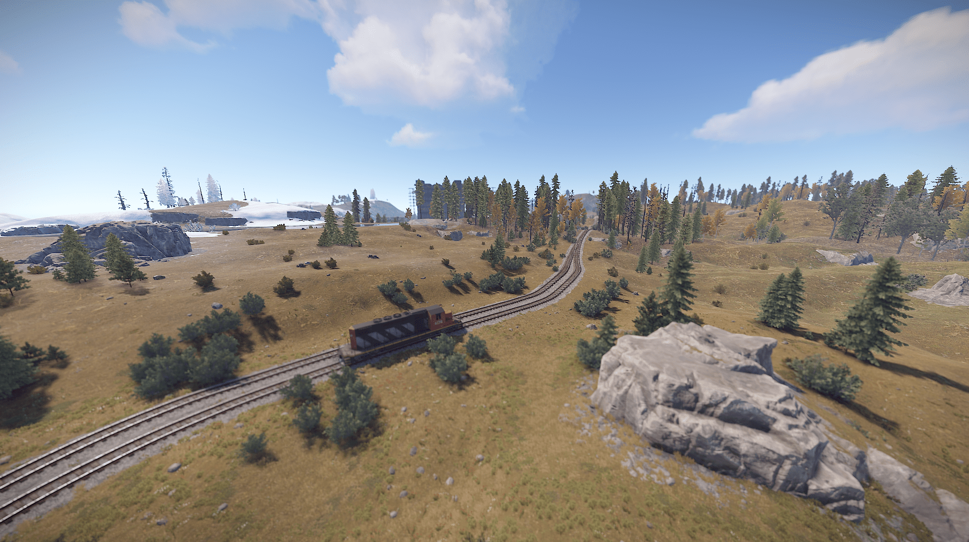 Procedural 2500 size map edited with large monuments and above ground railway network
