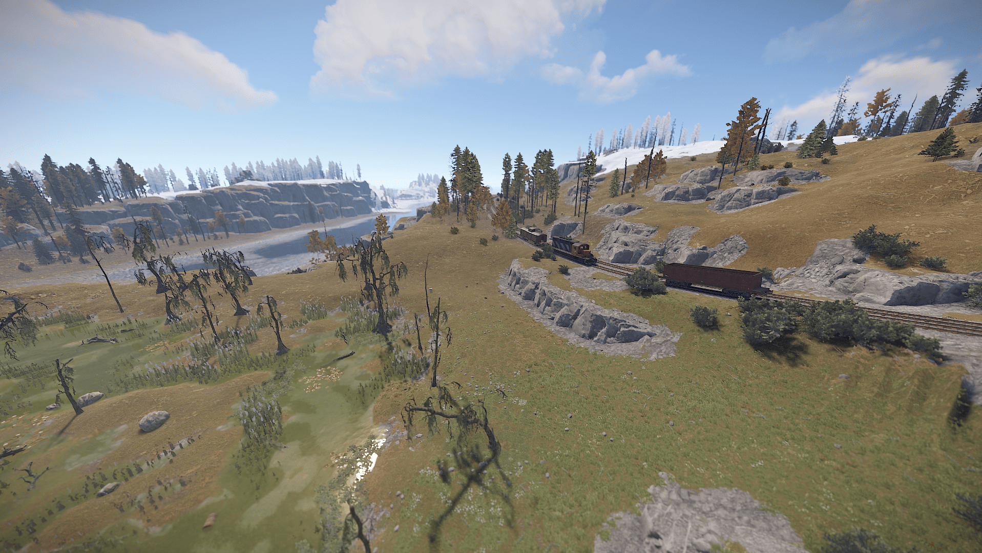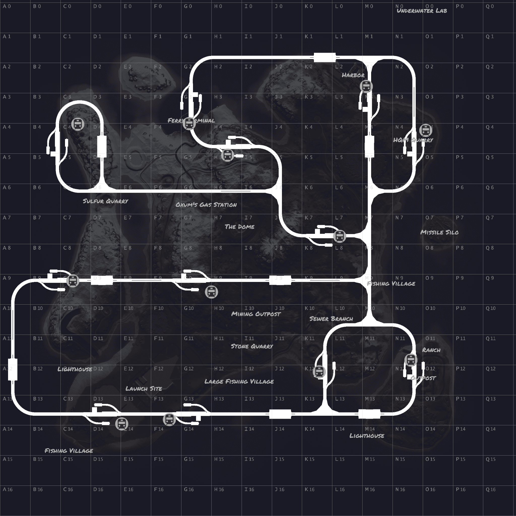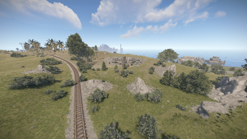 Procedural 2500 size map edited with large monuments and above ground railway network