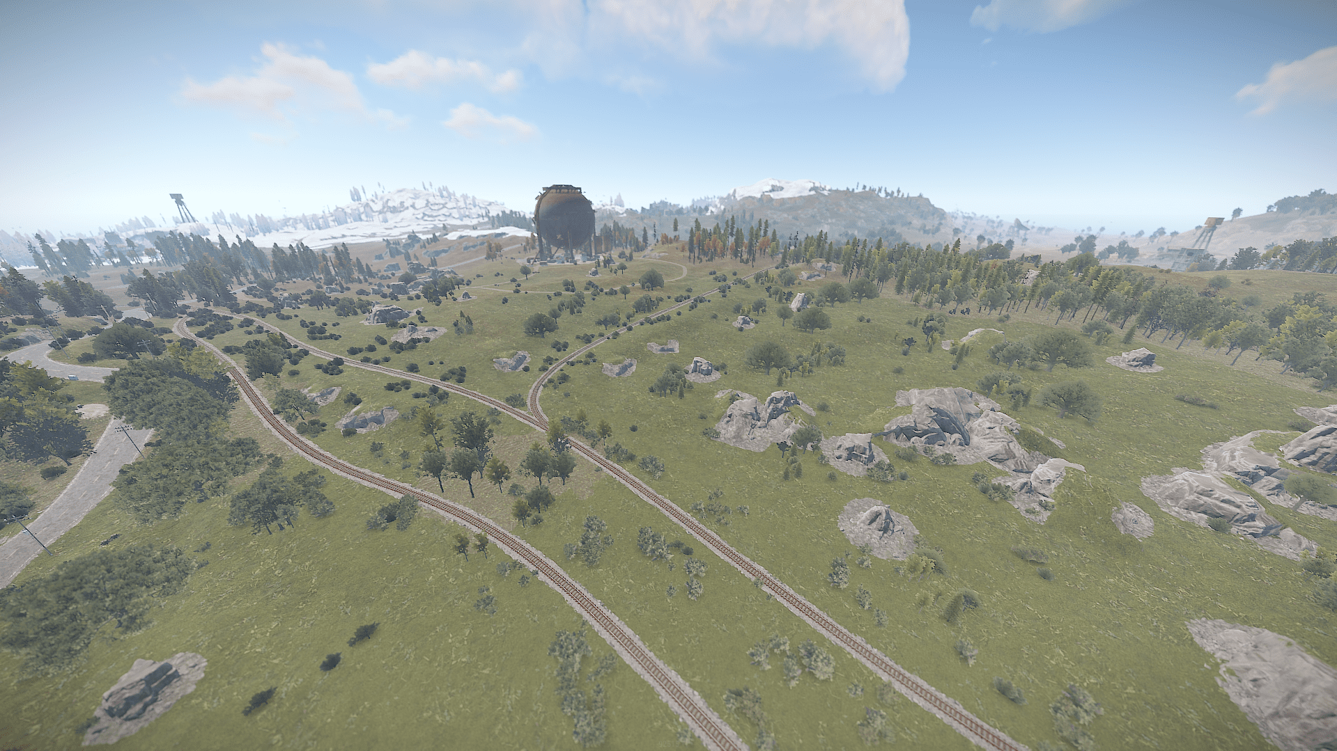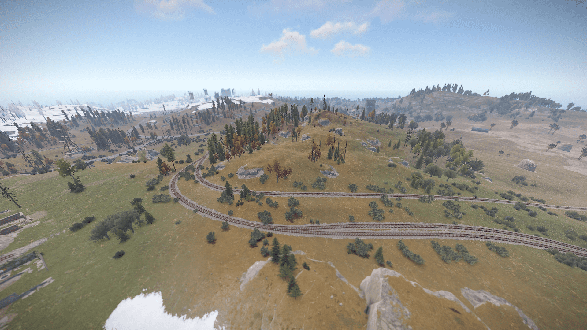 Procedural 3000 size map edited with large monuments and above ground railway network