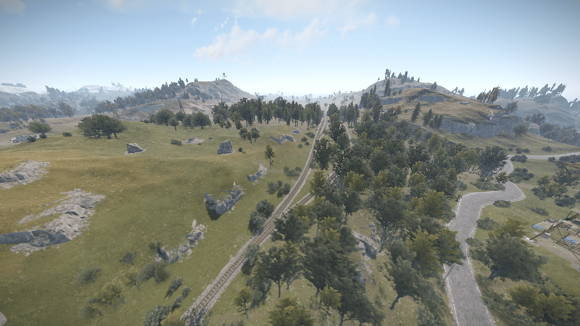 Procedural 2500 size map edited with large monuments and above ground railway network