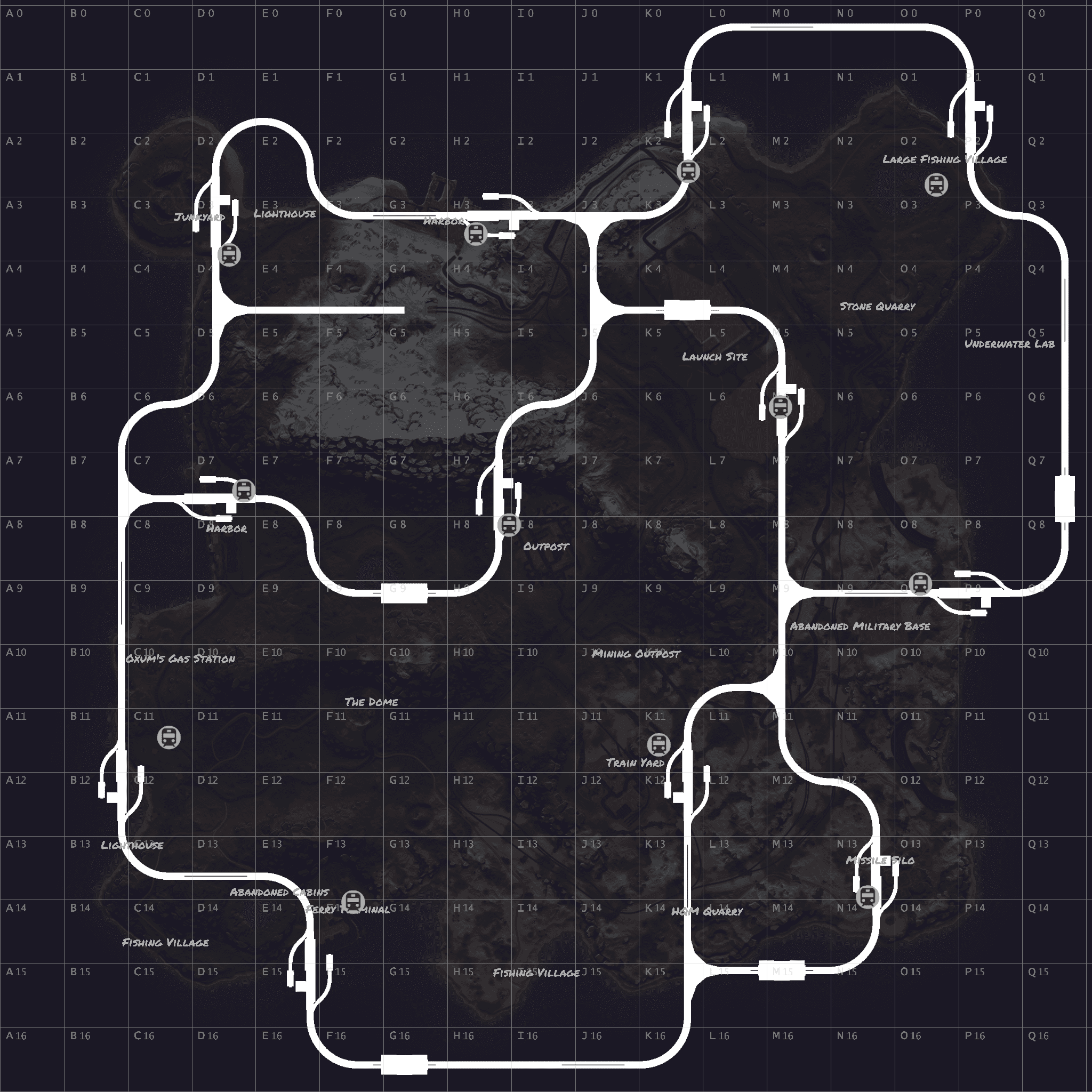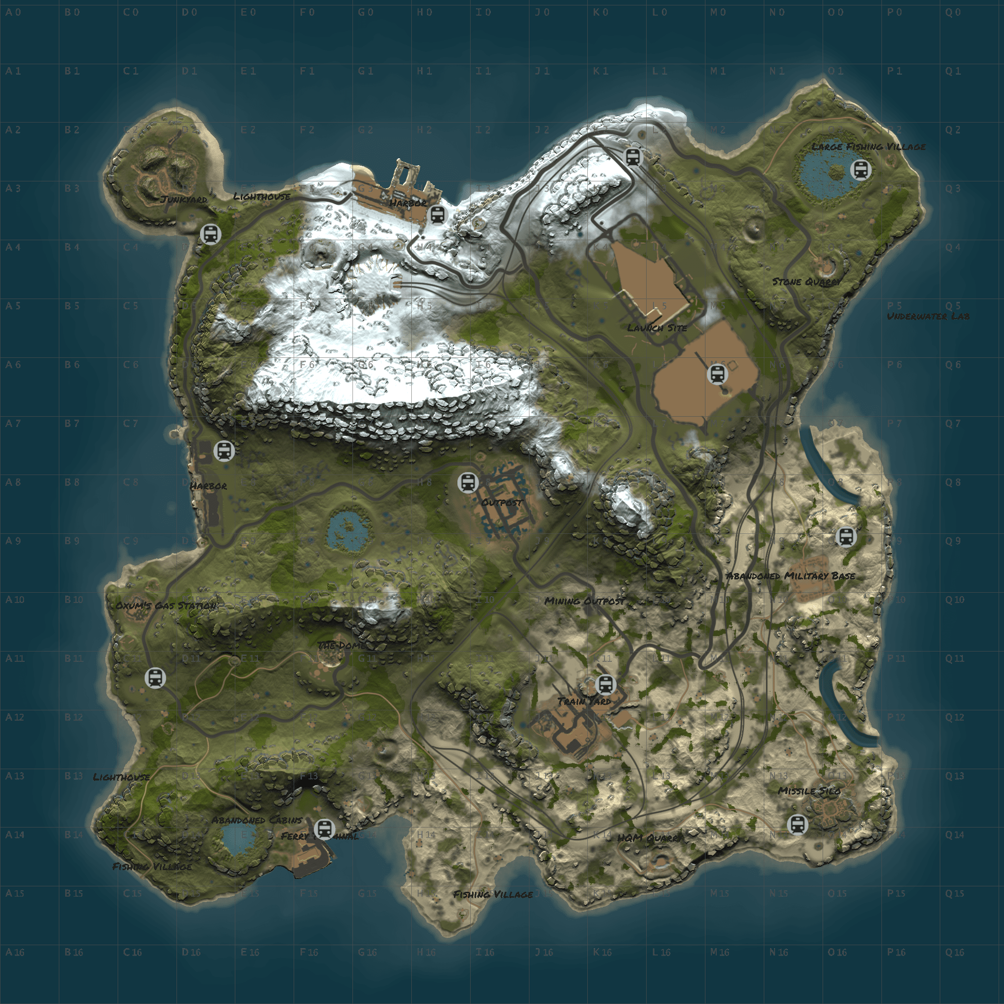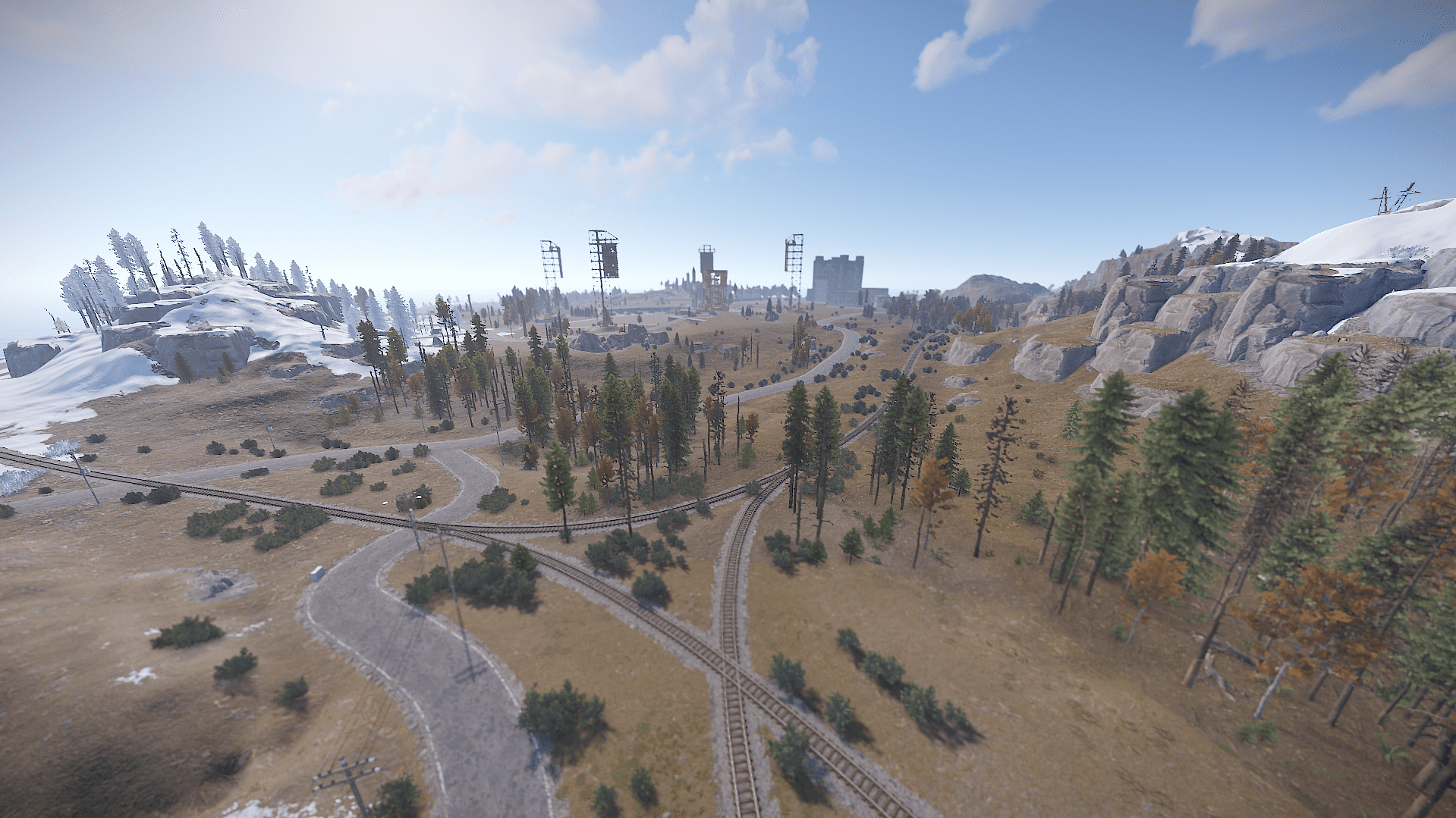 Procedural 2500 size map edited with large monuments and above ground railway network