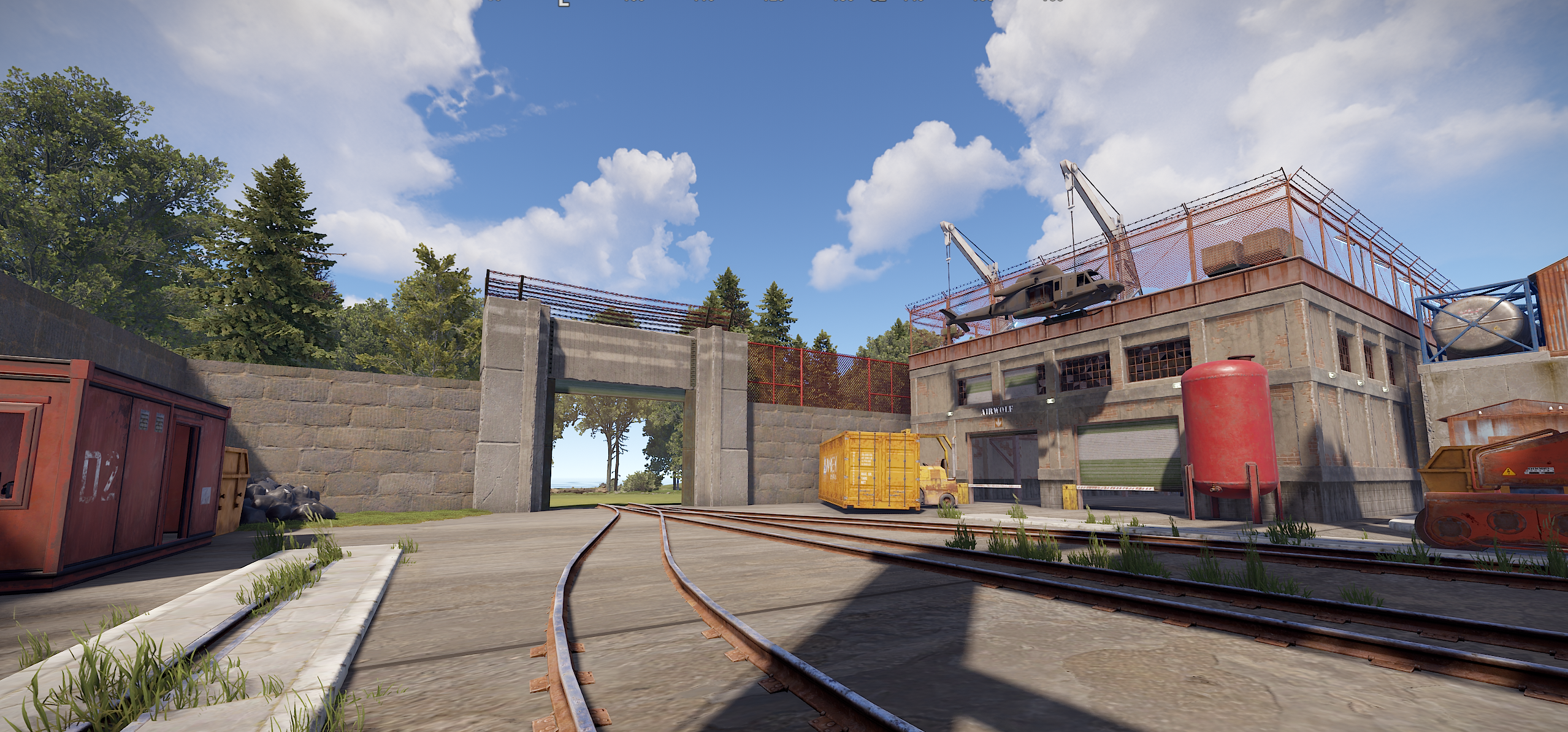 Here we have a Custom version of the safezone 'Compound/Outpost' Monument. This version is more modern looking and with some additions the original never had. Also now with a triple rail train station, 3 tracks. 2 Platforms with a walk over bridge should you get off on the wrong side Now with full car and train access