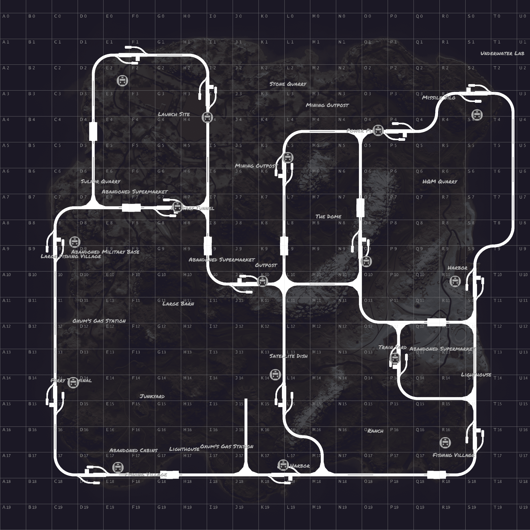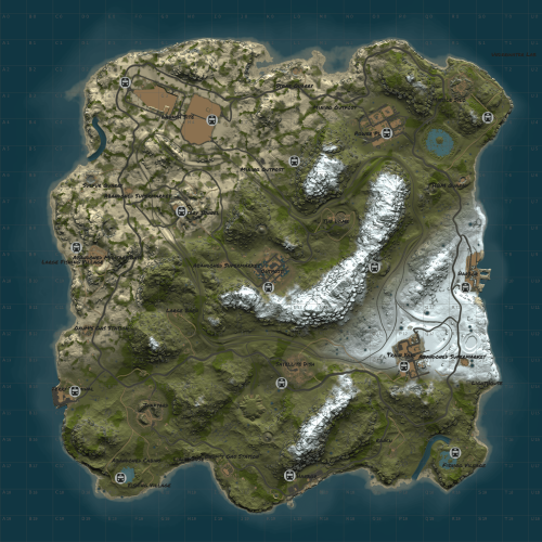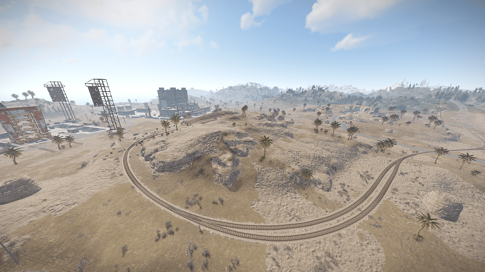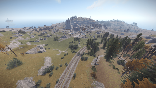 Procedural 3000 size map edited with large monuments and above ground railway network