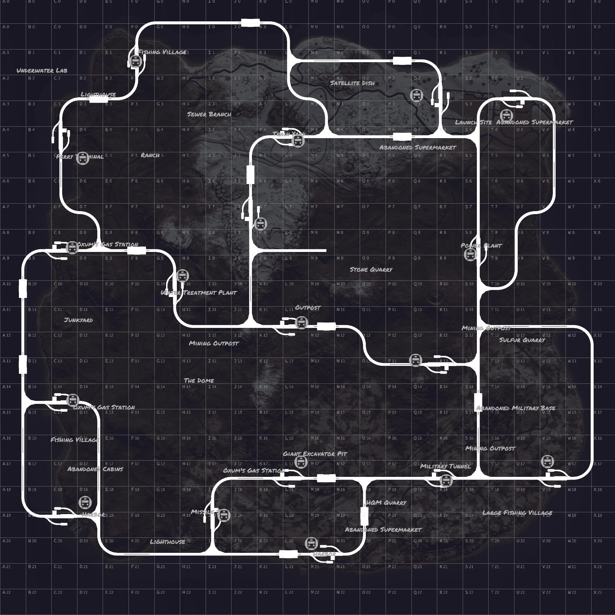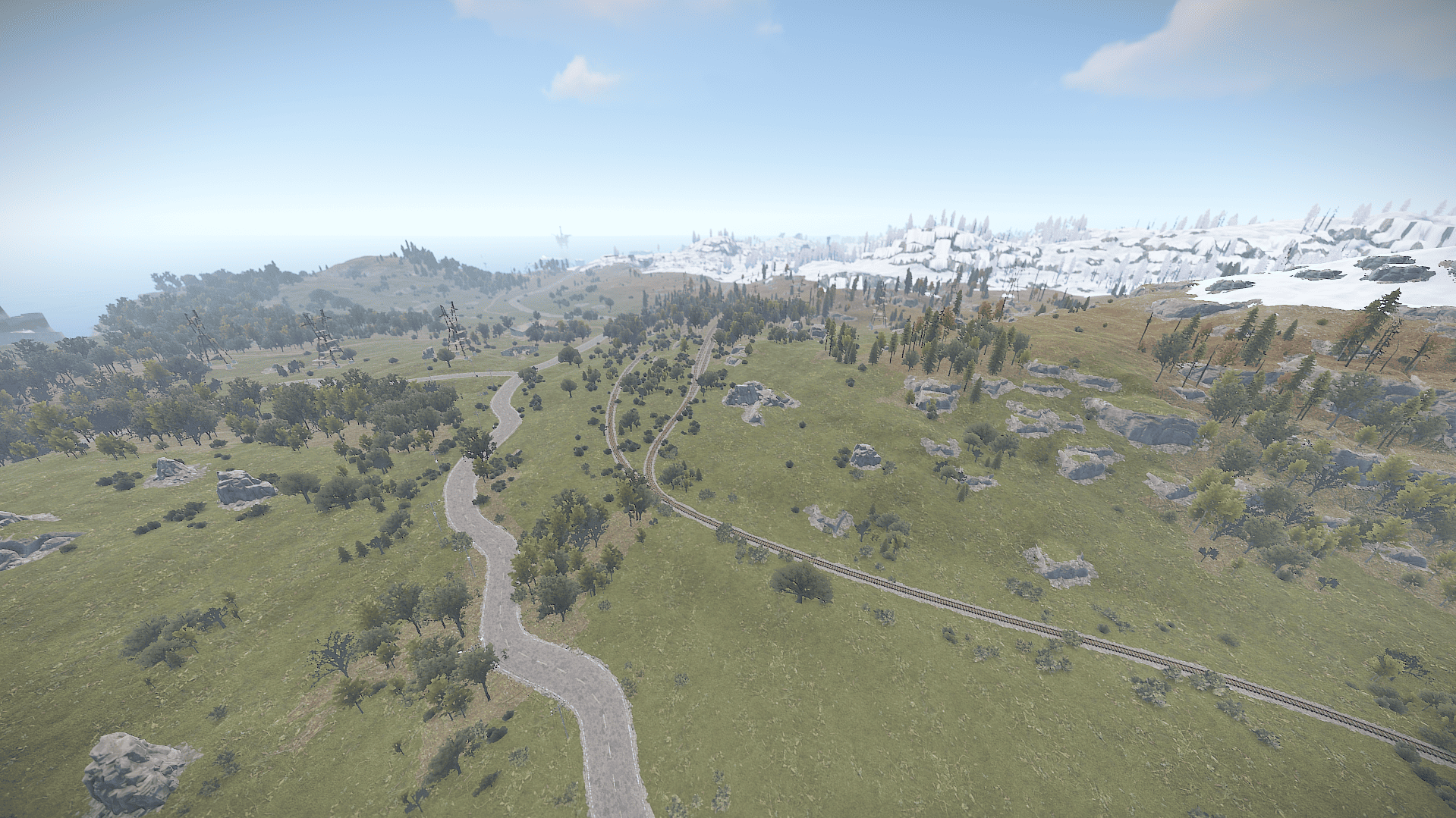Procedural 3500 size map edited with large monuments and above ground railway network