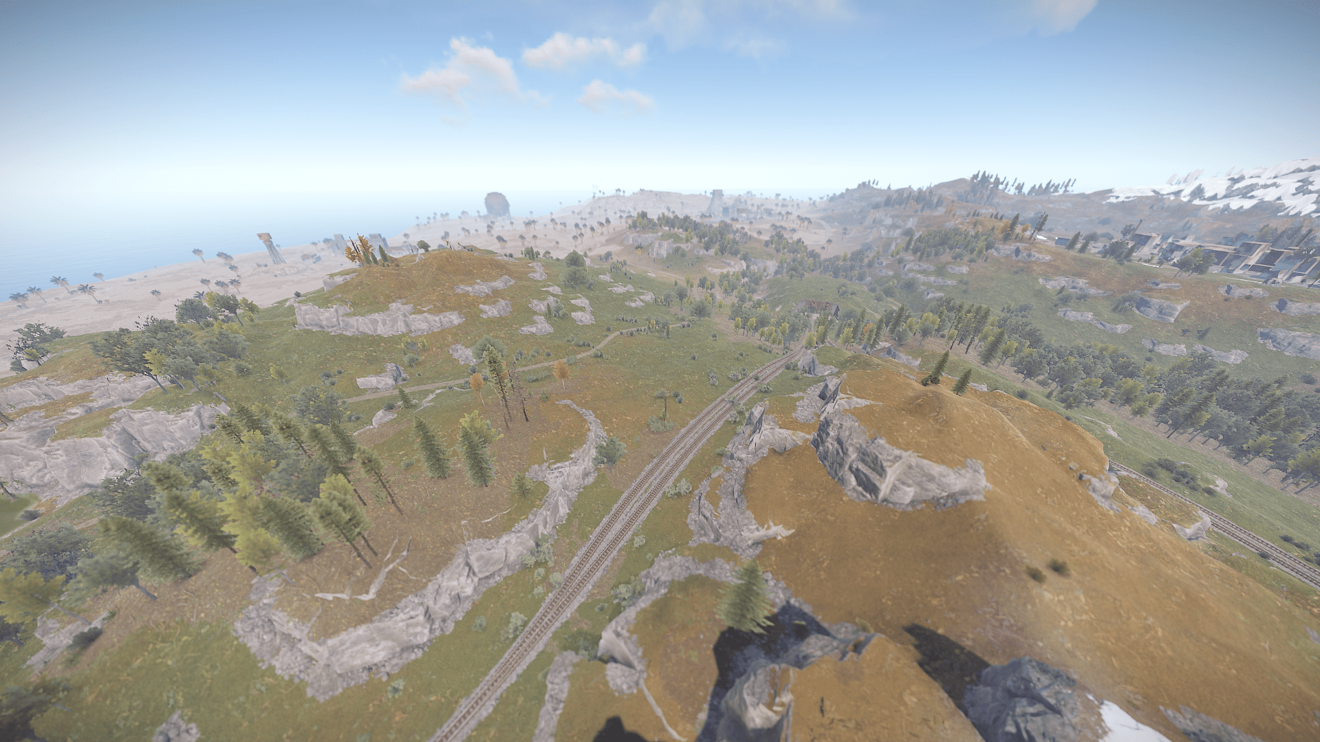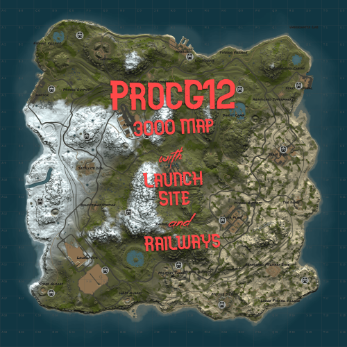 Procedural 3000 size map edited with large monuments and above ground railway network