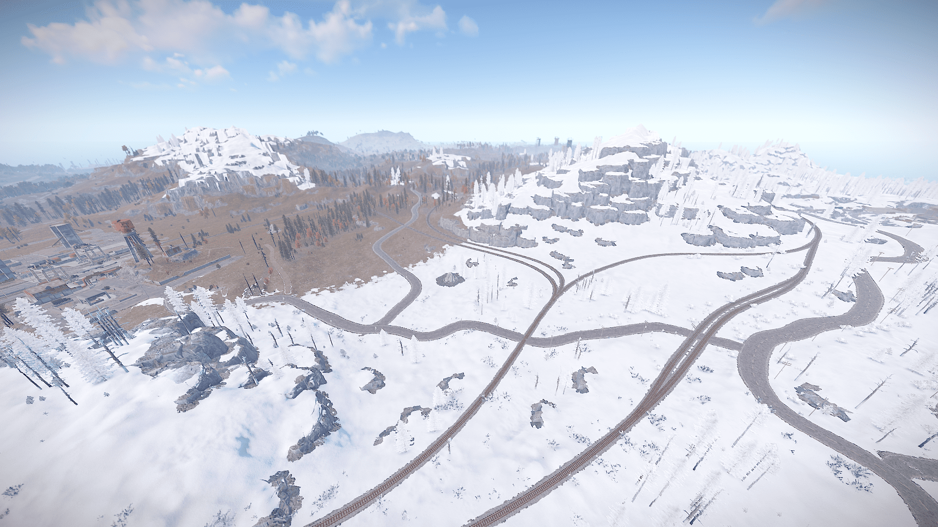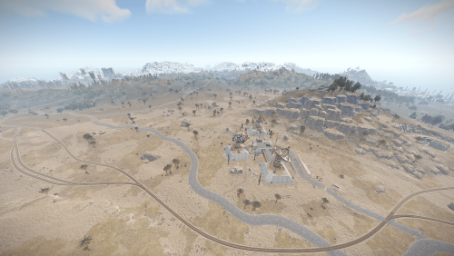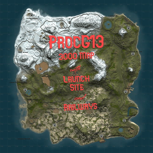 Procedural 3000 size map edited with large monuments and above ground railway network