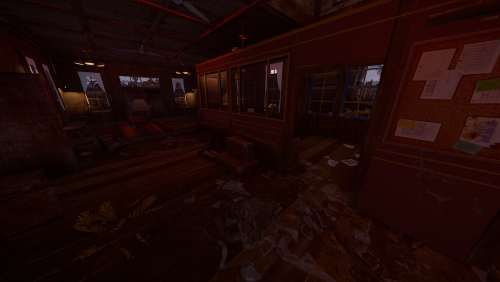 Ideally it should be placed near rail system , custom loot crates have been placed inside on top of open luggage along with a normal crate and a recycler behind the counter.