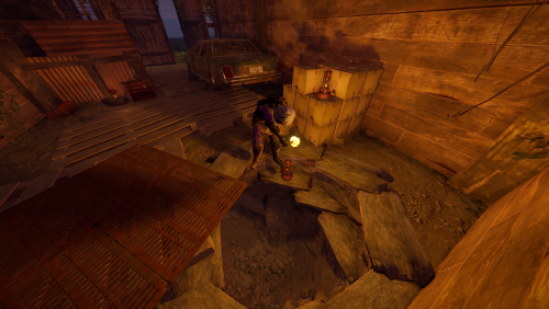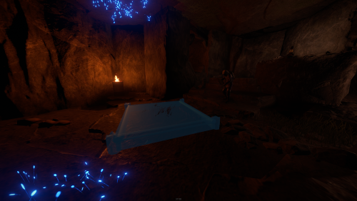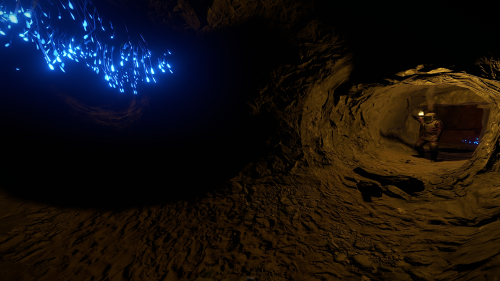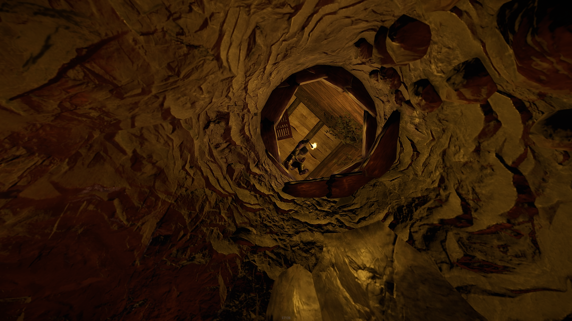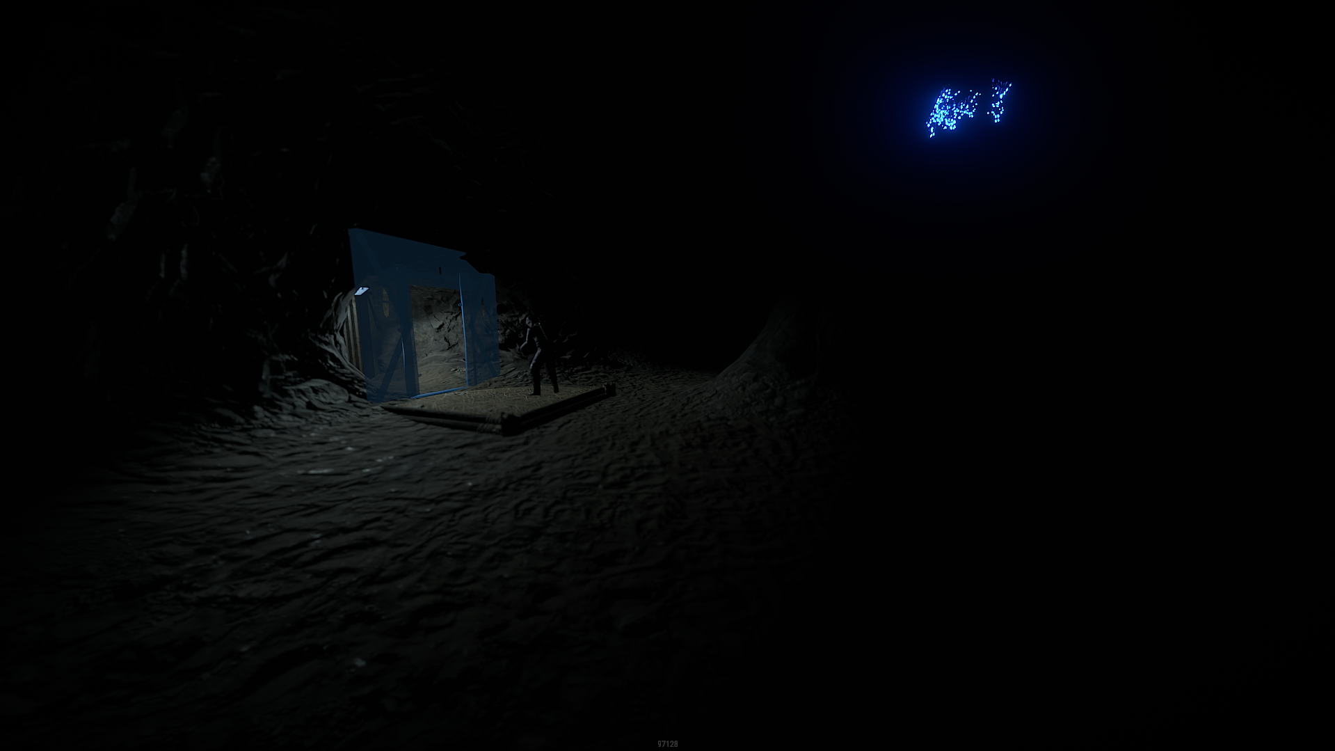 Cave system is accessible via the open hole at the back of the barn behind the car and the covers , main cave is a small space for a medium sized base with enough lighting from the ceilling glowing worms and lanterns.