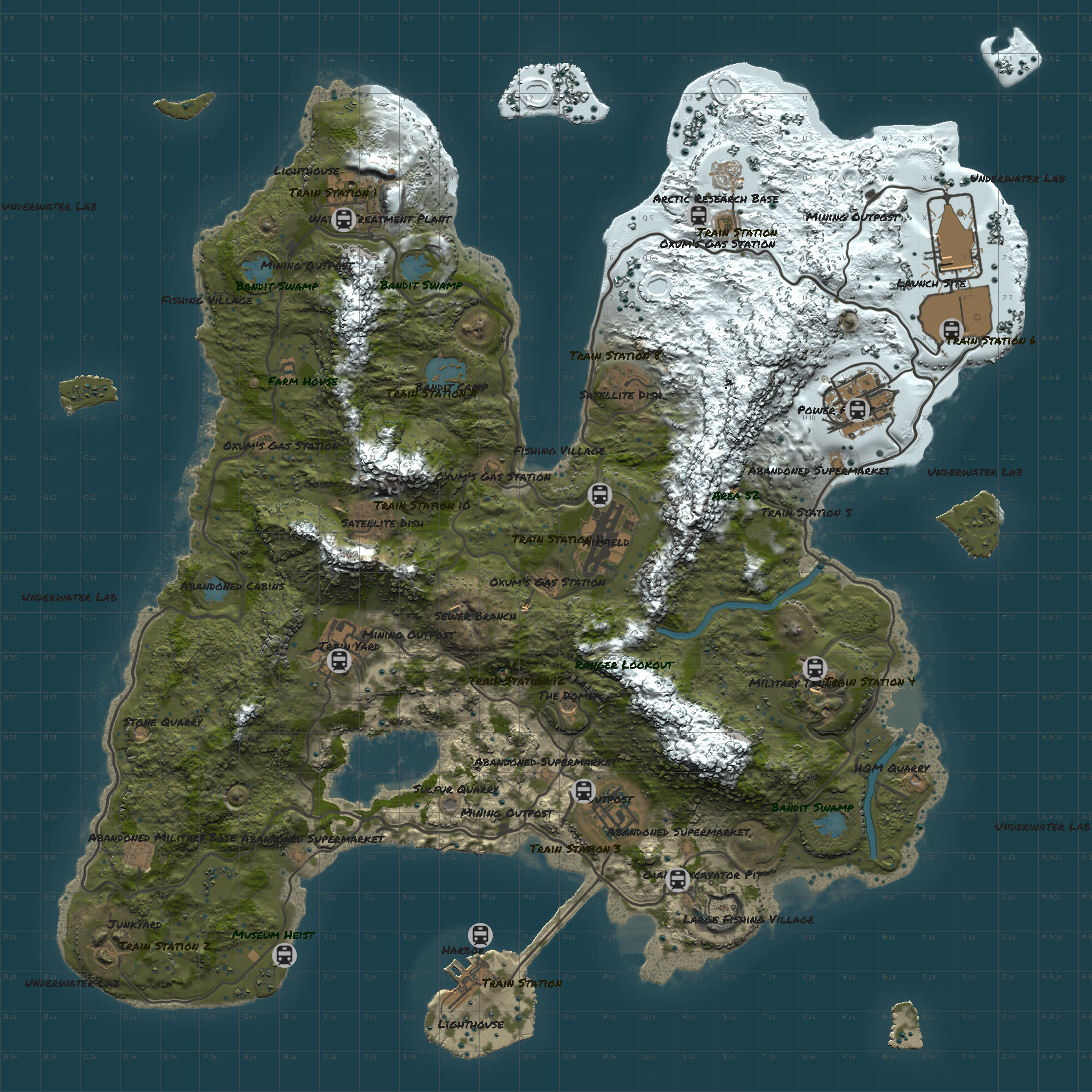 All maps feature both procedural and custom monuments and some of them have above ground railways !