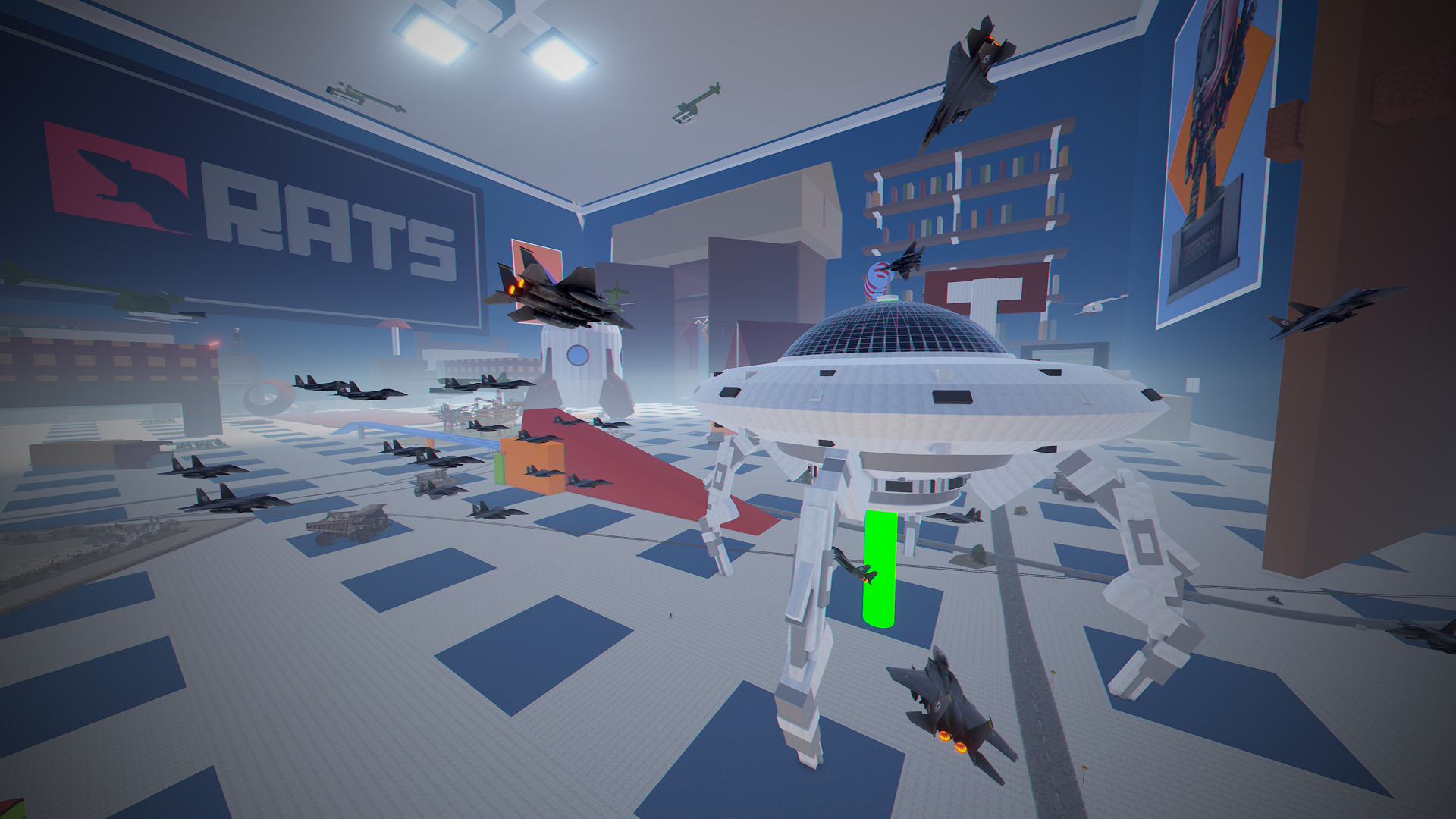 • Mars Attack Arena, an impressive flying saucer, inspired by the movie Mars Attacks, this huge monument is surrounded by multiple fighter planes, inside you will find two floors with a sci-fi style. Use this monument to create an Arena for your players to fight each other.