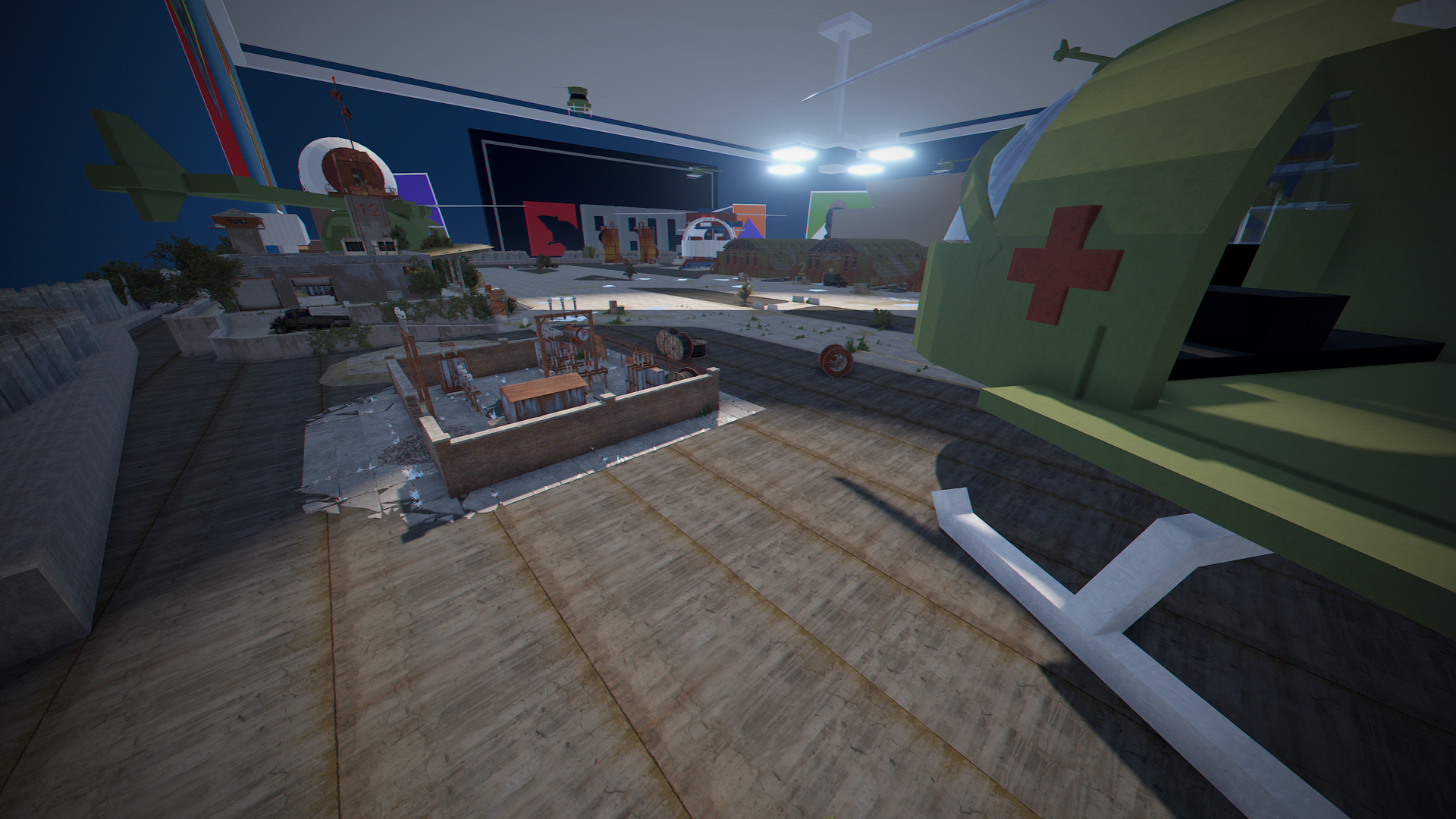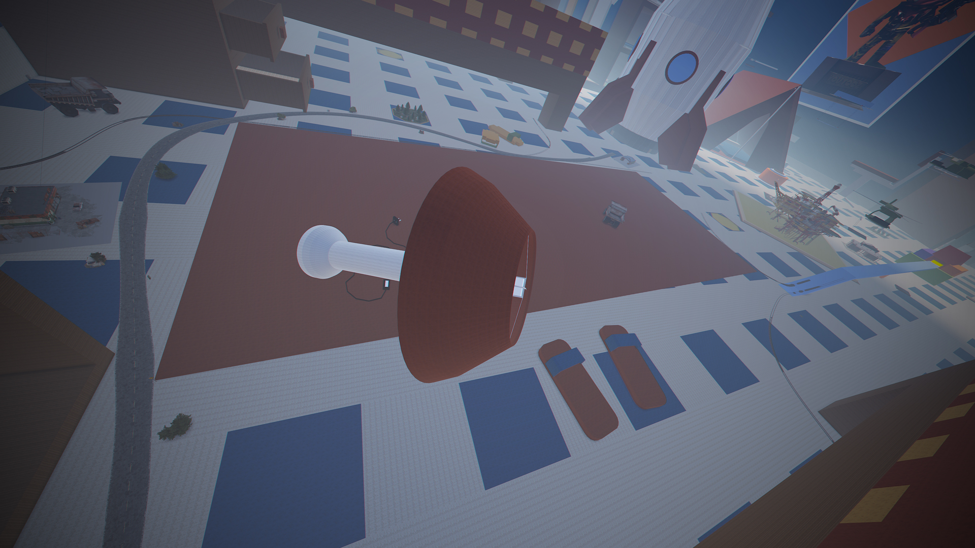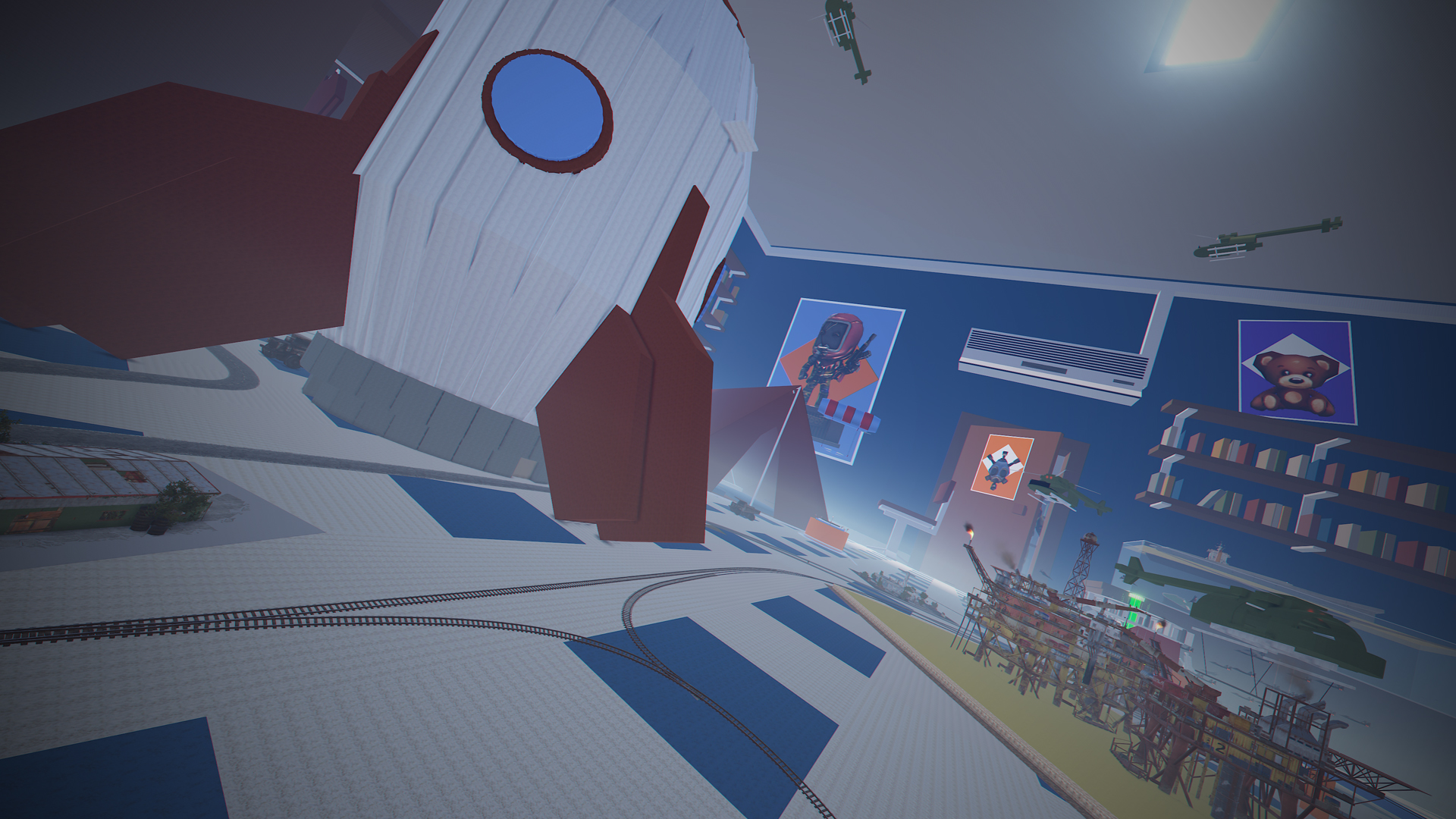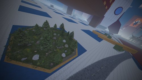 • Zone for events, a huge space rocket with two floors, on the second floor you can use the Zone Manager plugin to place an event or if you prefer you can use this area for the Raideable Bases plugin. On the second floor players can build, also on this second floor you will find several helicopter respawns.