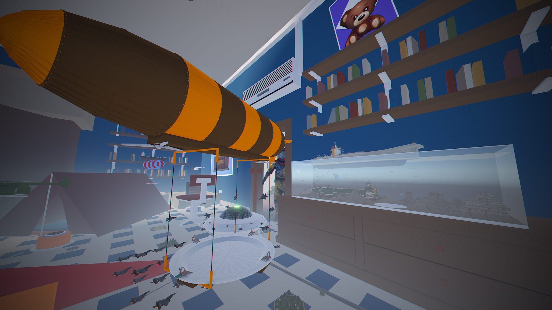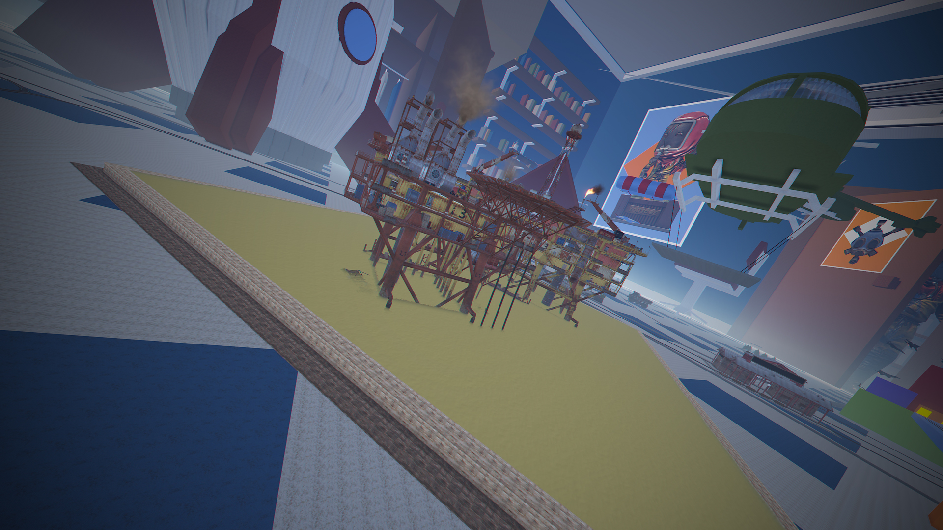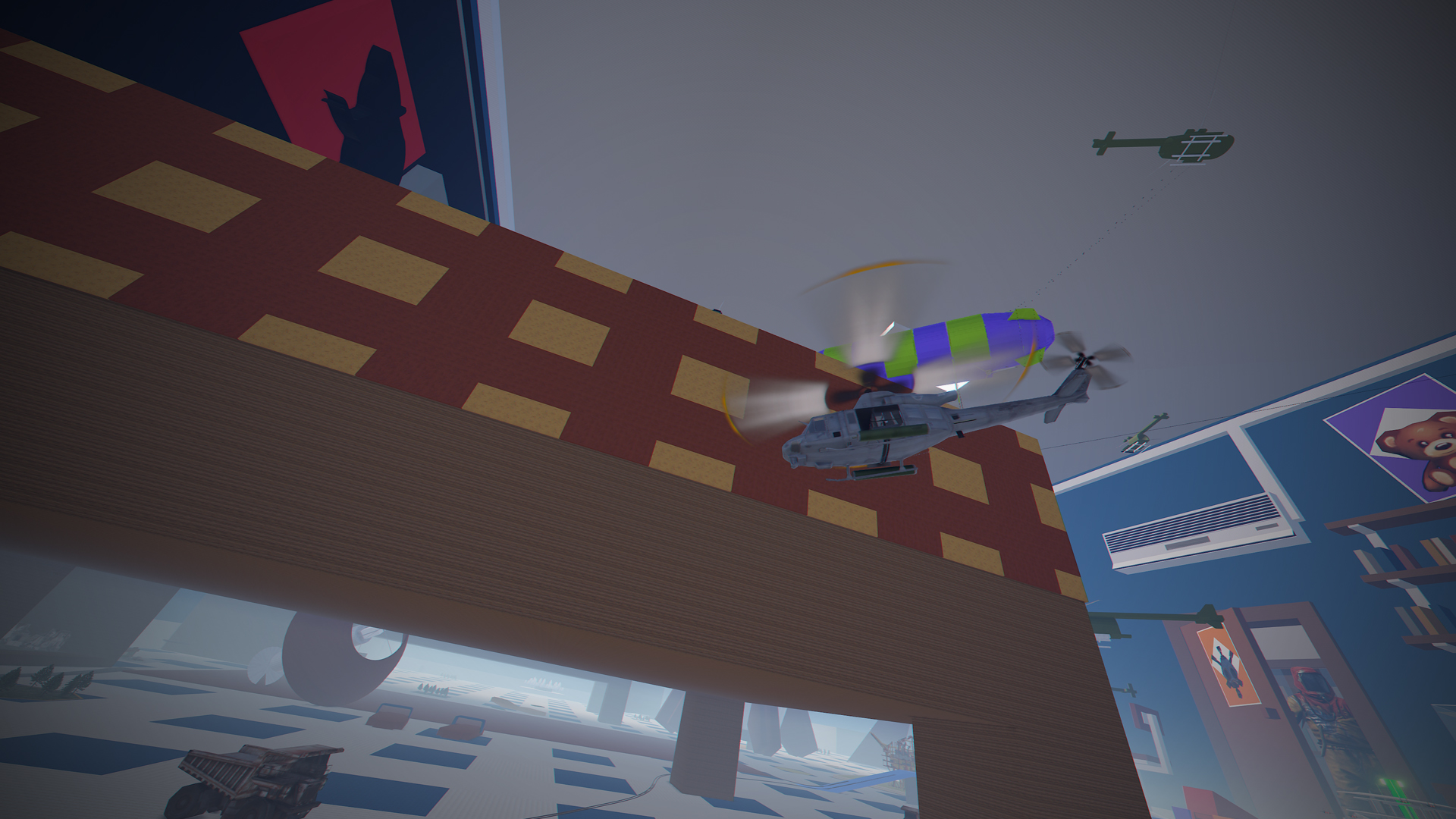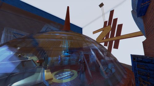 • Zone for events, a huge space rocket with two floors, on the second floor you can use the Zone Manager plugin to place an event or if you prefer you can use this area for the Raideable Bases plugin. On the second floor players can build, also on this second floor you will find several helicopter respawns.
