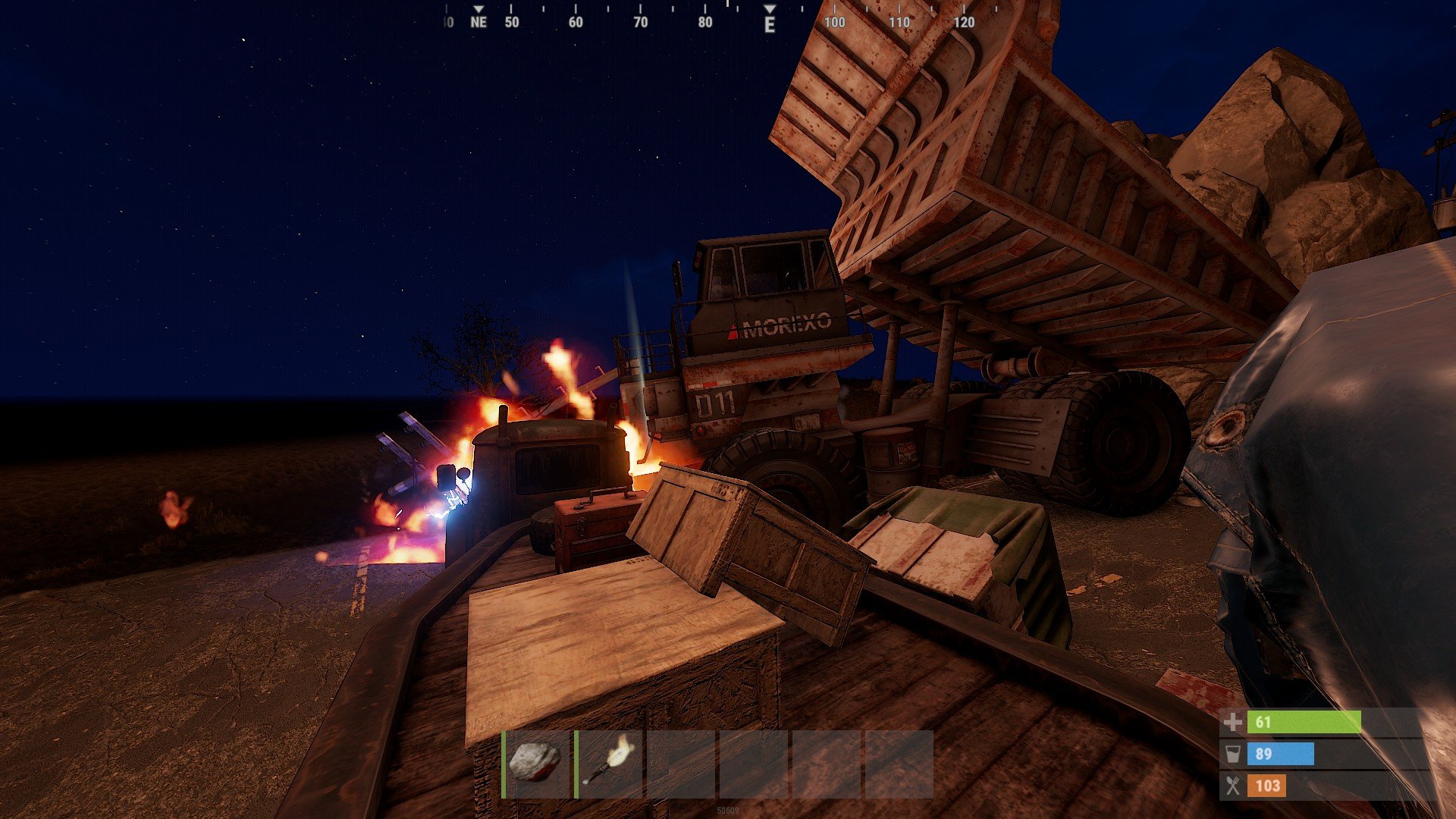 A little decor scene with two trucks crashed on open street. Some flame and tesla effect for the ambience.