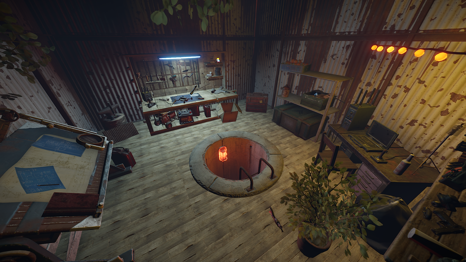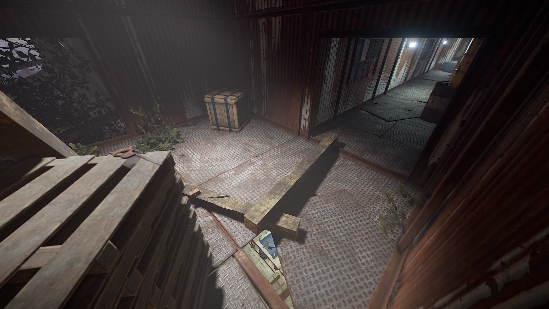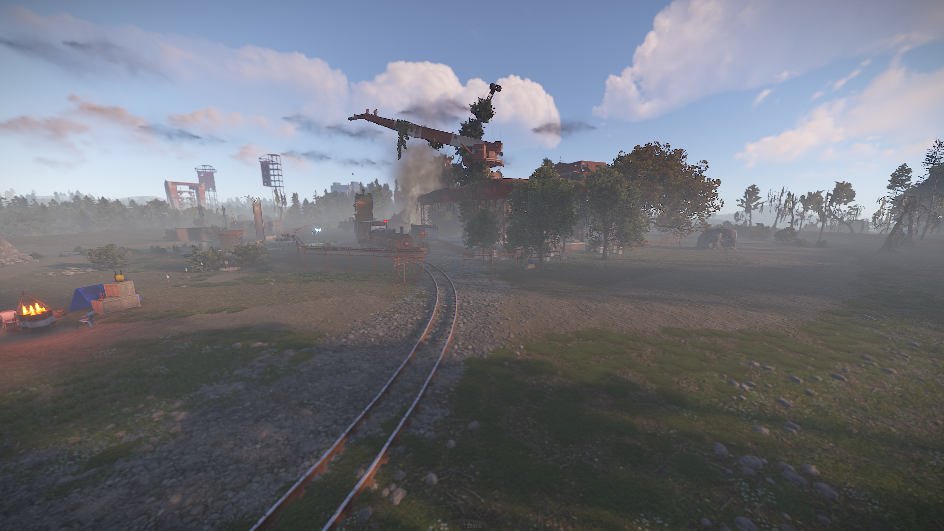 The scene shows a rotten loading station surrounded by a little forest, which was used to reload goods from trains to trucks and trucks to trains in the good old times.