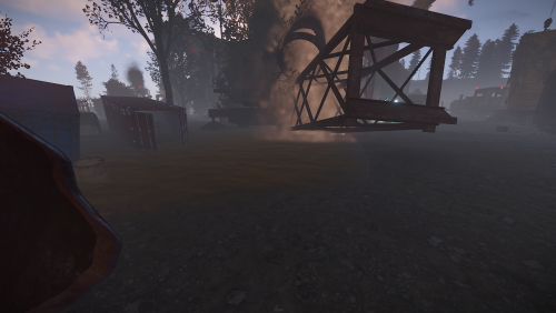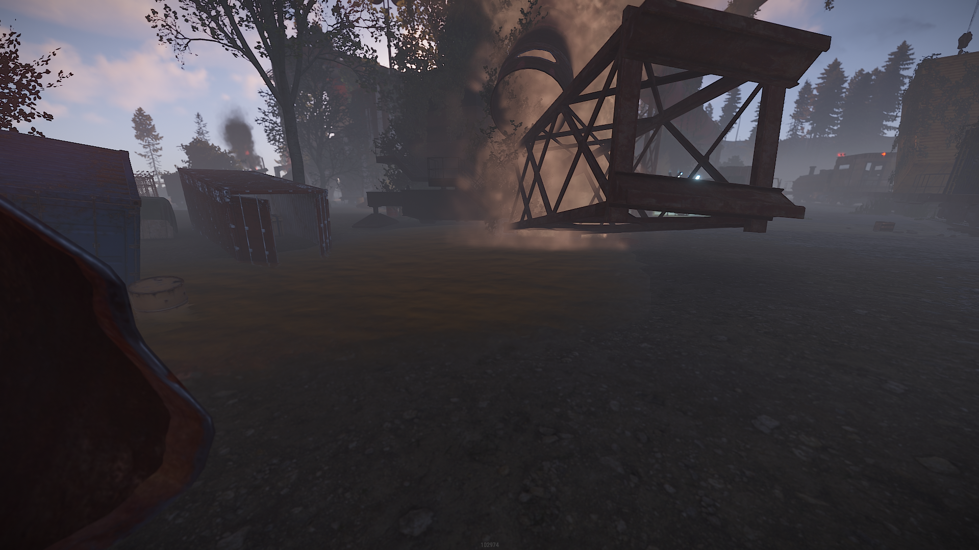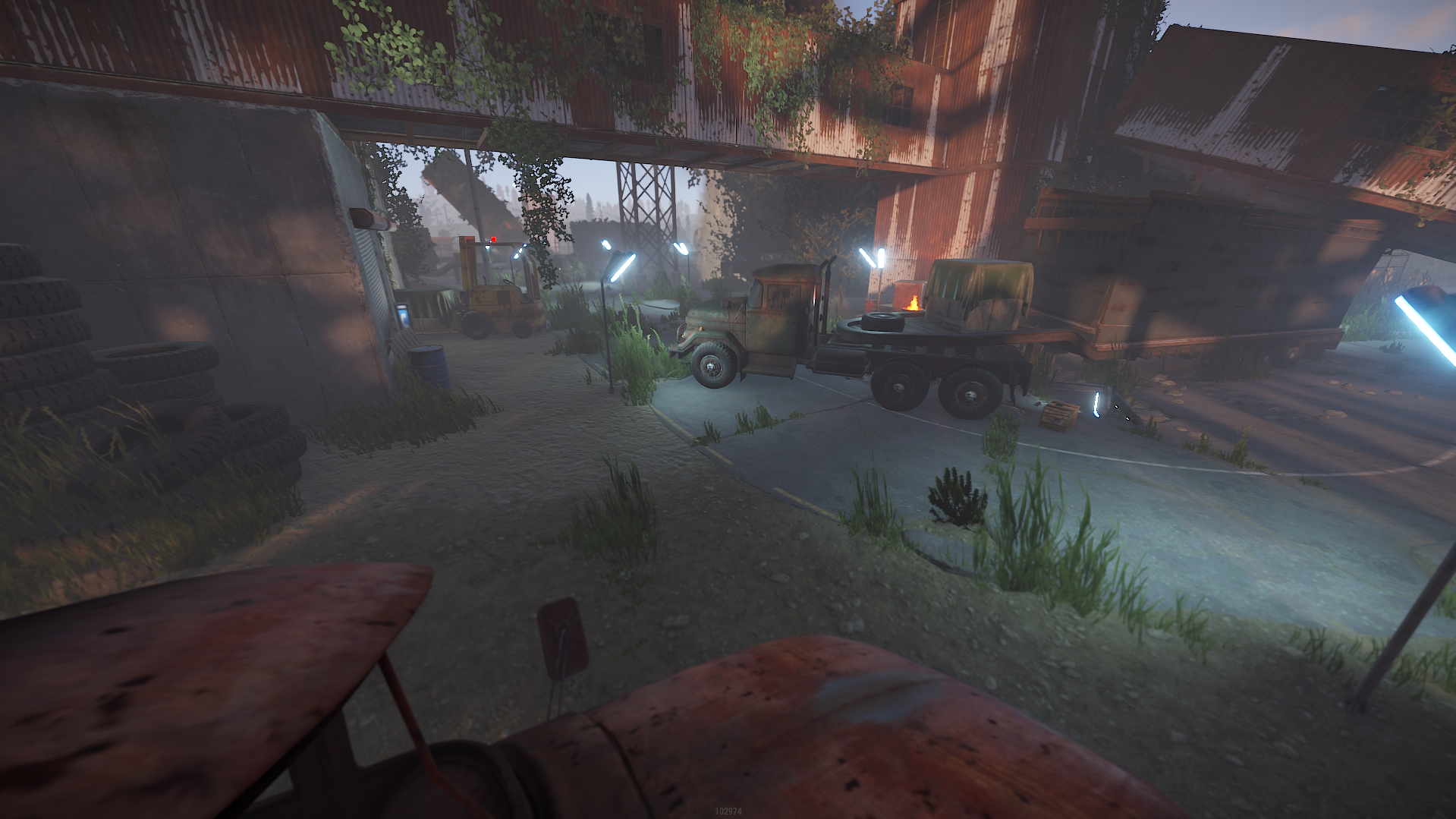 But it isn´t so leave as it seems. A group of scientists was using the loading station to reload armory to a train and send it to the compound as suddenly one of the rusty structures collapsed and buried an armored truck among themselves.