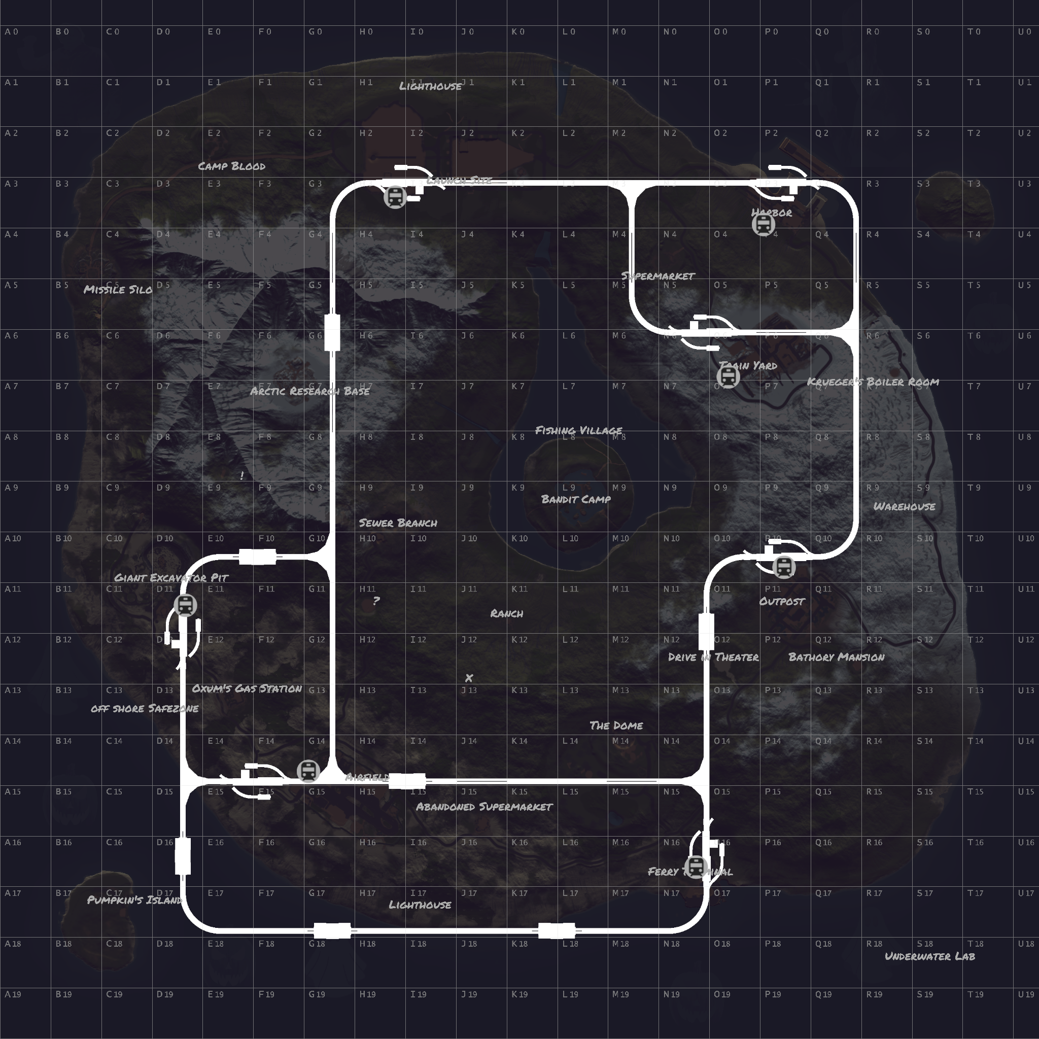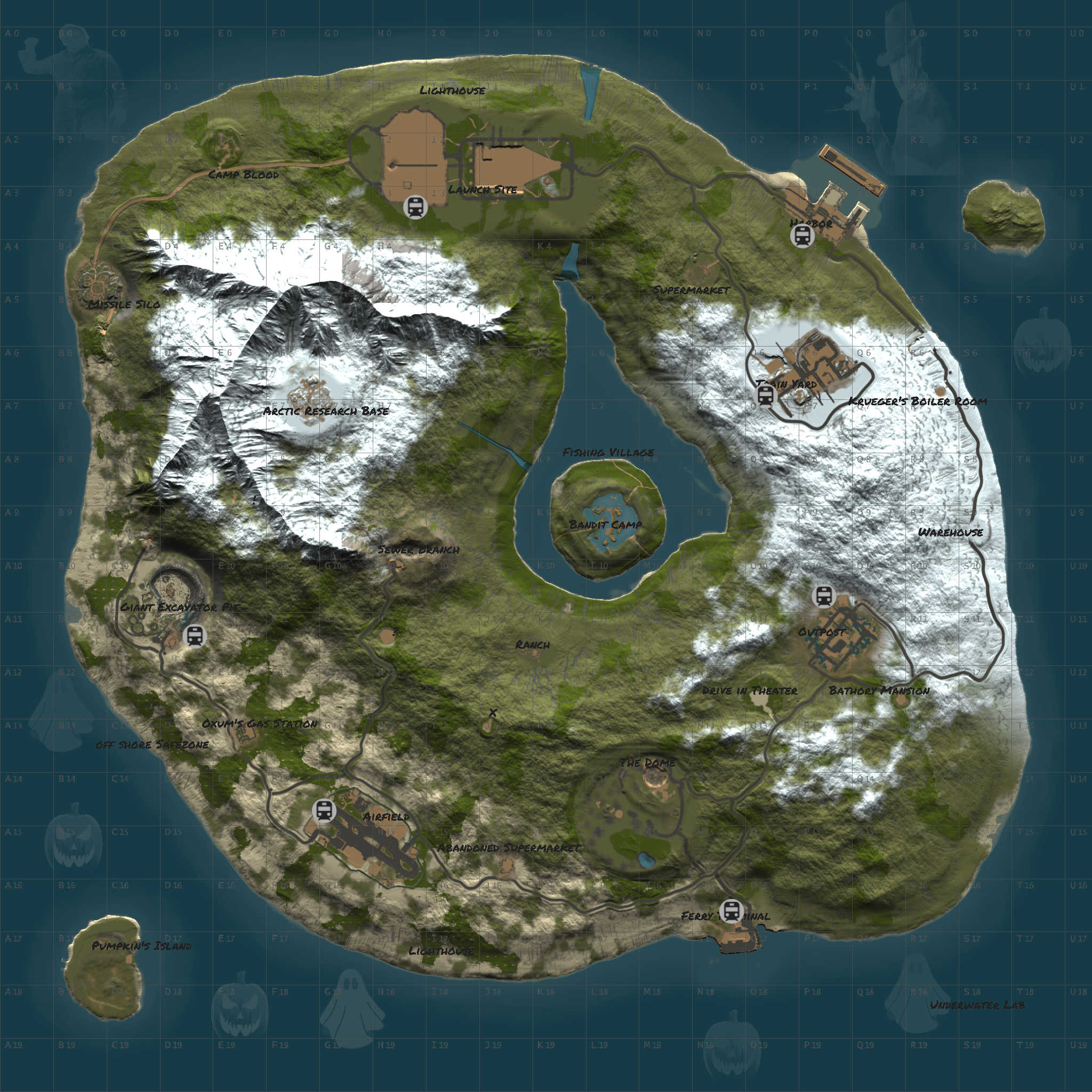 Venture onto this map and find unique spots to build your base or spooky monuments to get your loot!